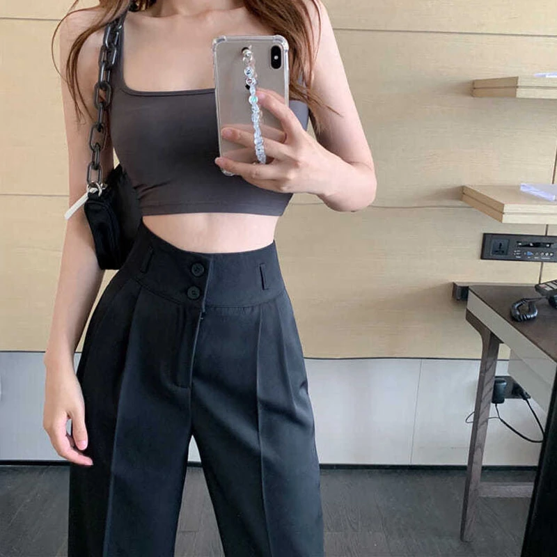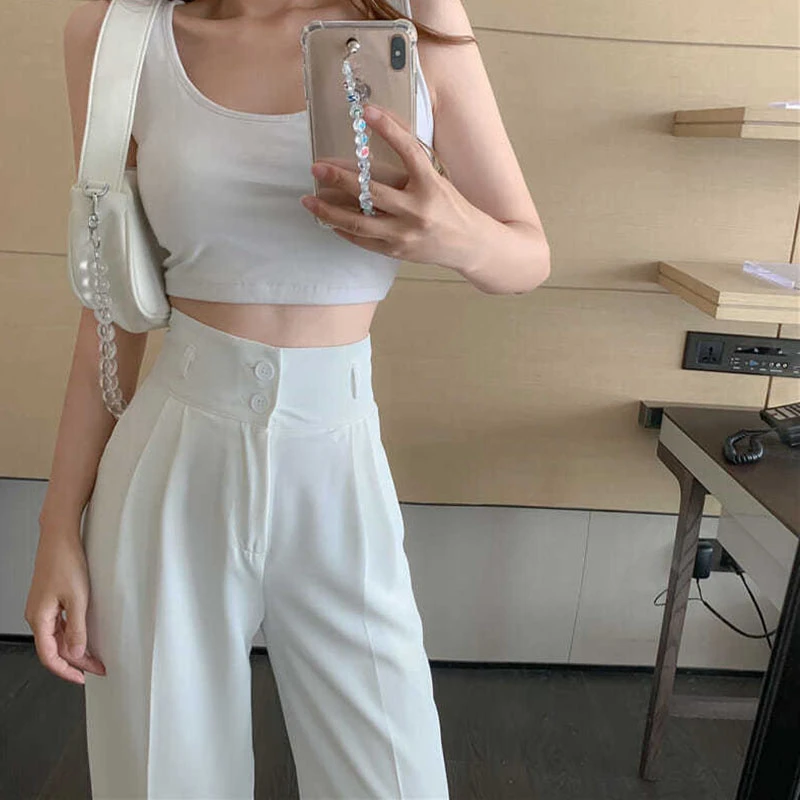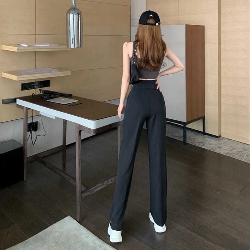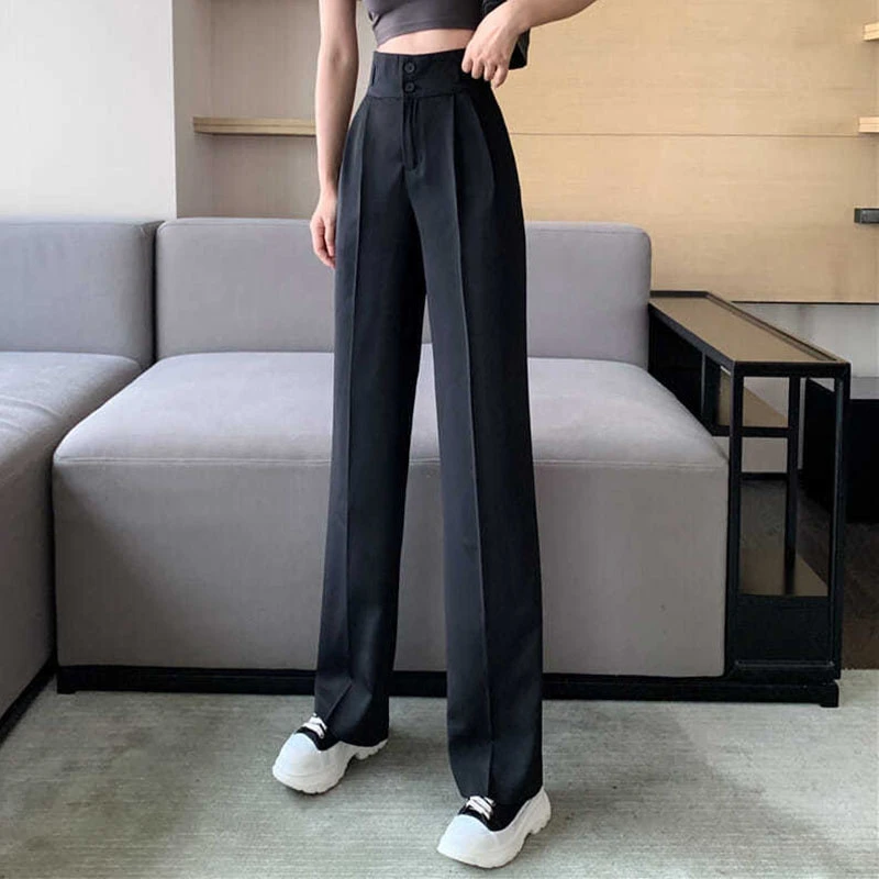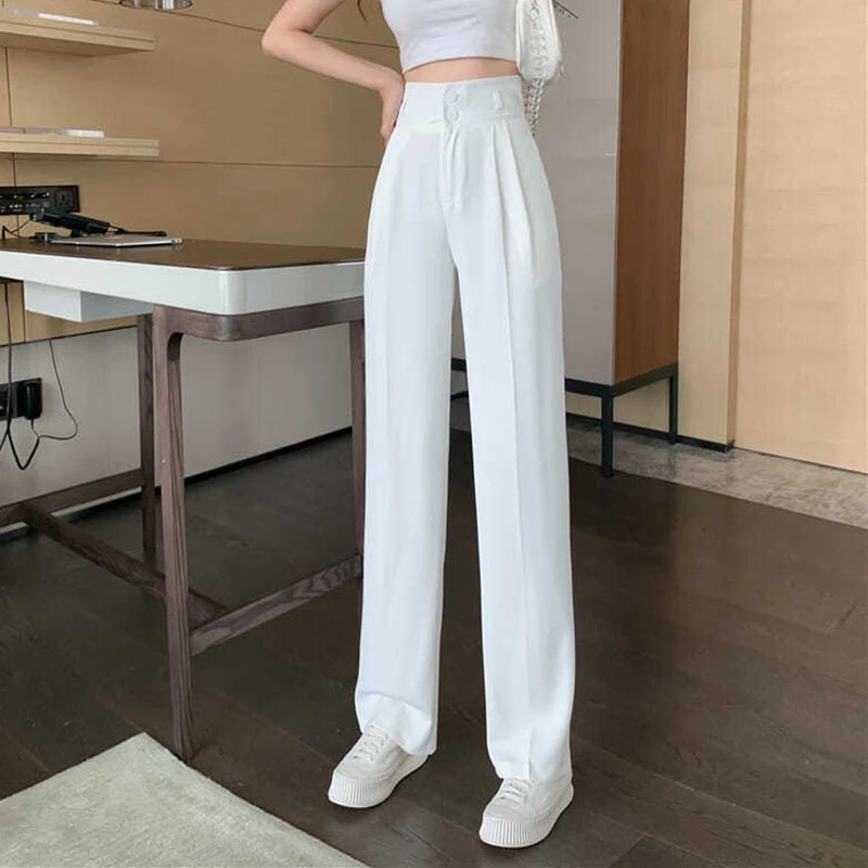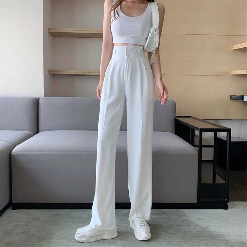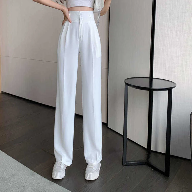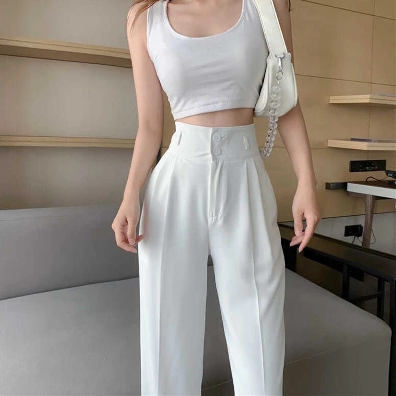 Black White Women Straight Pants Korean Fashion High Waist Wide Leg Trousers