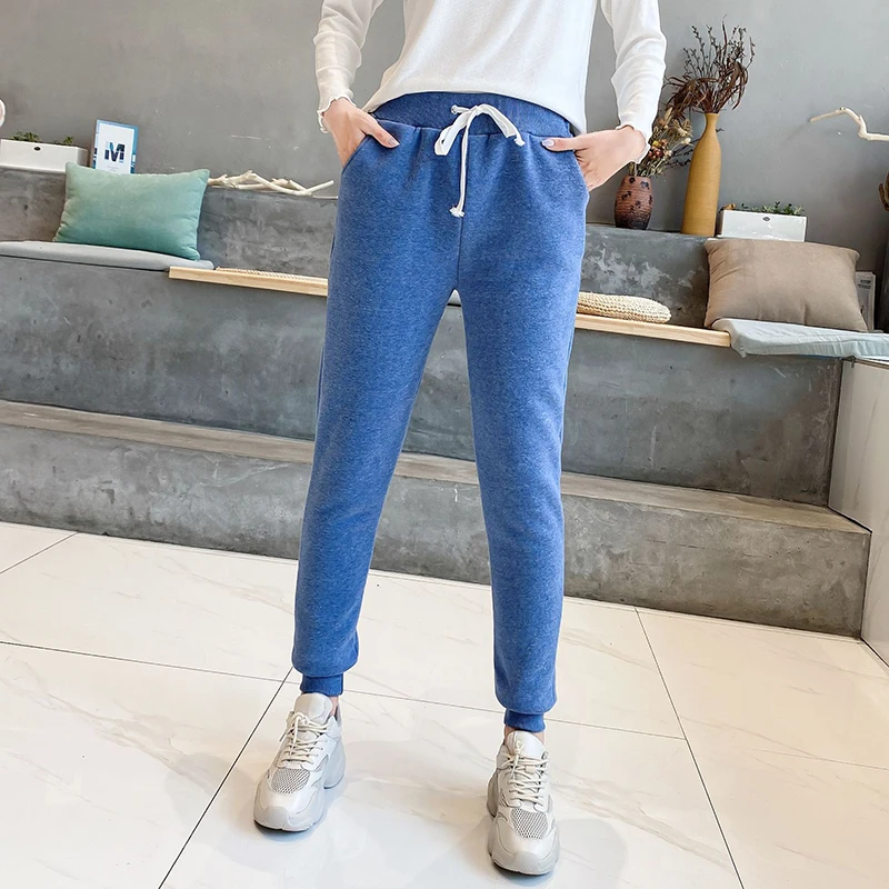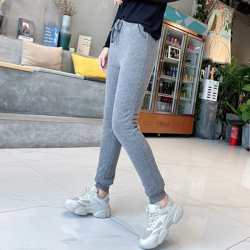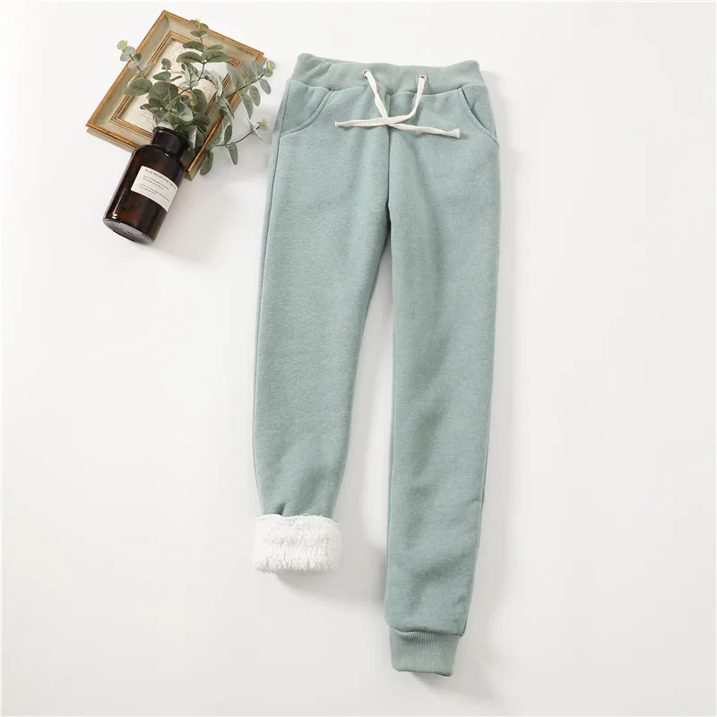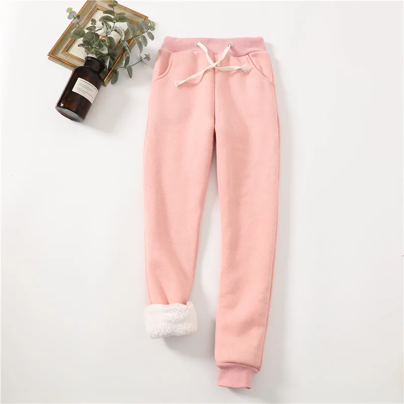 Lucyever Winter Thicken Plush Sweatpants Women Elastic Waist Warm Harem
