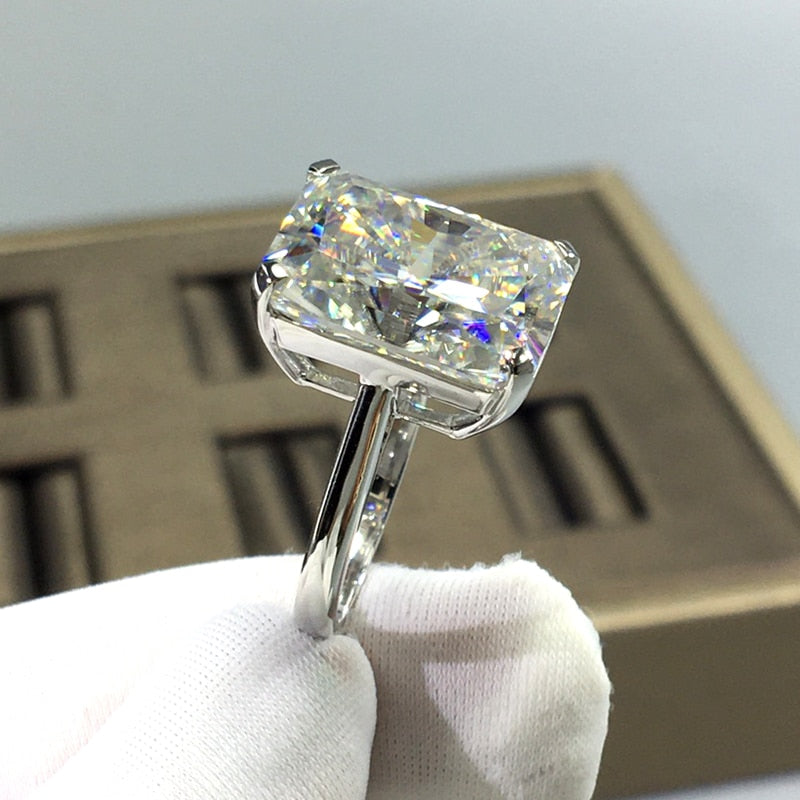 Solid 18K AU750 White Gold Ring 10CT 11×15MM Rectangular Super Flash Moissanite Passed Diamond Test Wedding Jewelry Anniversary