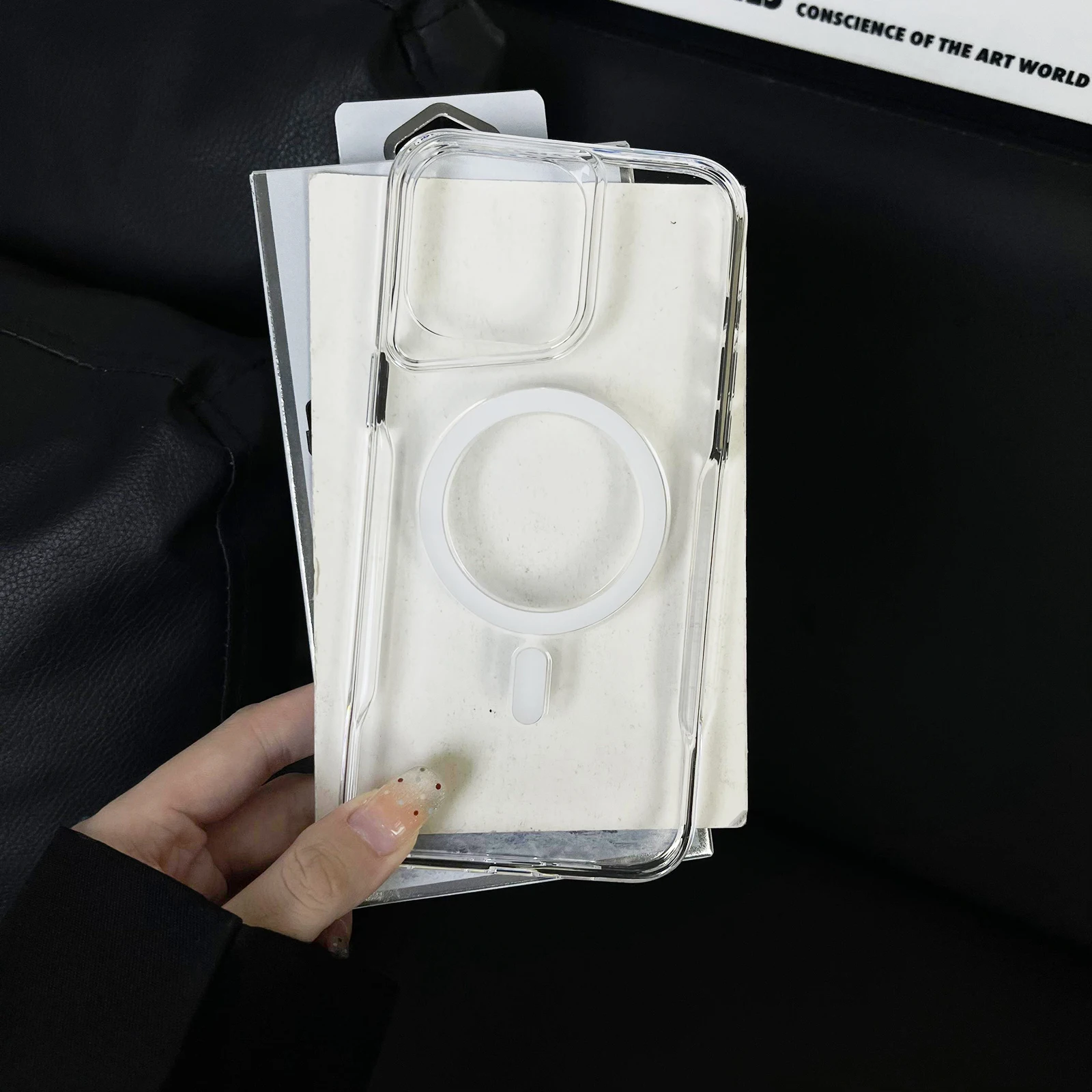 The Transparent Case For iPhone 15 14 13 12 Pro Max Plus Magnetic Wireless Charge Ultra-Thin Plastic Phone Cover is engineered to offer sleek protection without adding unnecessary bulk. This ultra-thin design means your iPhone 14 case, iPhone 12 Pro Max case, or iPhone 11 Pro Max case maintains its slim, pocket-friendly profile. Whether you're using an iPhone 14 Plus case or iPhone 11 phone case, this transparent case ensures that your device remains lightweight, making it easy to carry around without feeling weighed down.