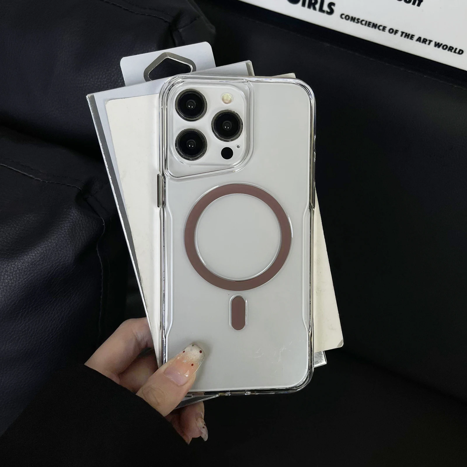 Luxury Magsafe Transparent Case For iPhone 15 14 13 12 Pro Max Plus Magnetic Wireless Charge Ultra-Thin Plastic Phone Cover