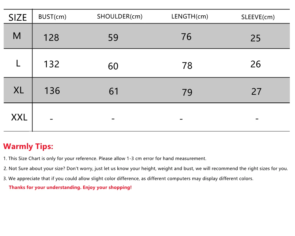 Please be sure to read the size chart before buying, or contact customer service to avoid unnecessary trouble, Thanks for your understanding. Enjoy your shopping!