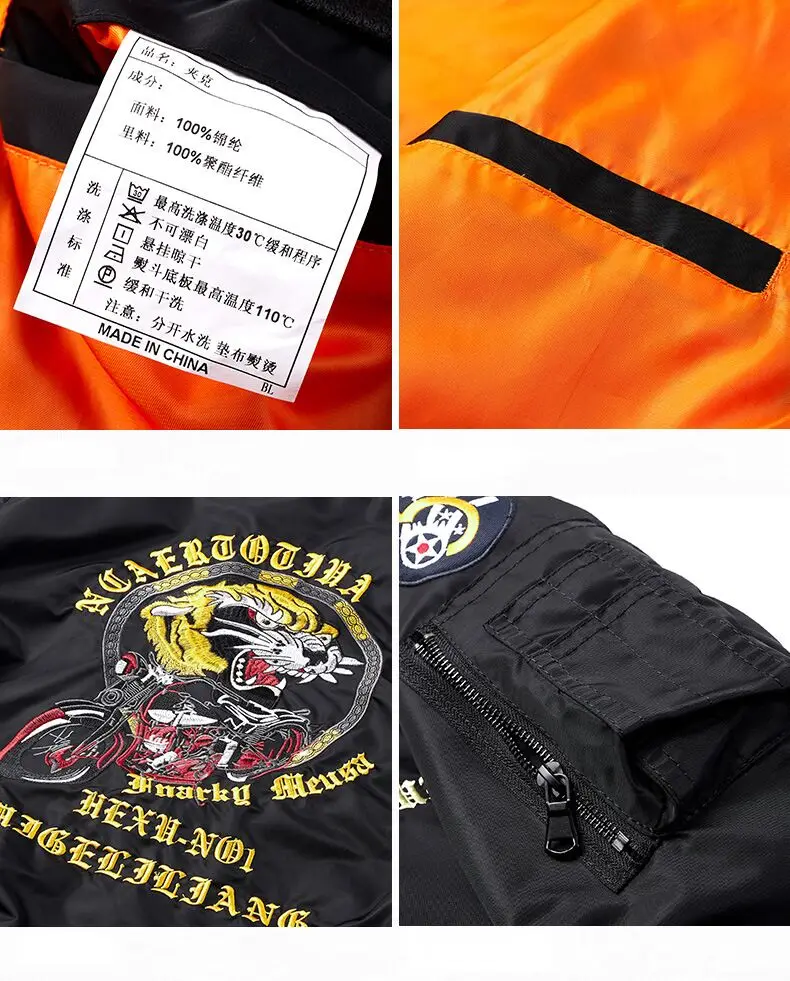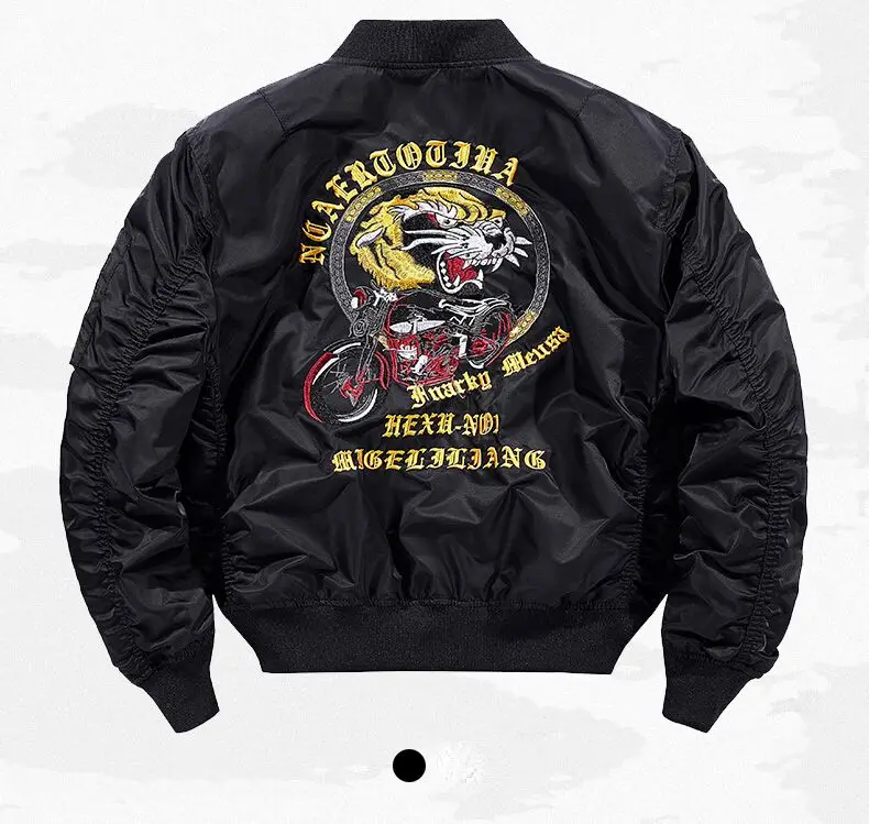 Whether you're a fan of streetwear, motorcycle-inspired fashion, or just need a reliable men’s jacket for everyday wear, this bomber jacket merges rugged appeal with a sleek silhouette. The military-inspired design, enhanced with unique embroidery, adds a bold statement to your outfit, while the versatile fit makes it easy to pair with casual or layered styles.