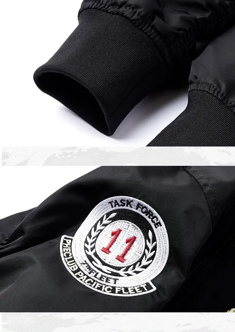 Men's Autumn Winter Hip Hop Thick Warm Embroidery Jacket Military Motorcycle Jacket