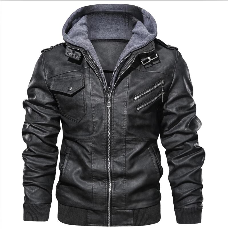 Men's Autumn Winter Motorcycle Leather Jacket Windbreaker Hooded PU Jackets Male Outwear Warm Baseball Jackets Plus Size 3XL