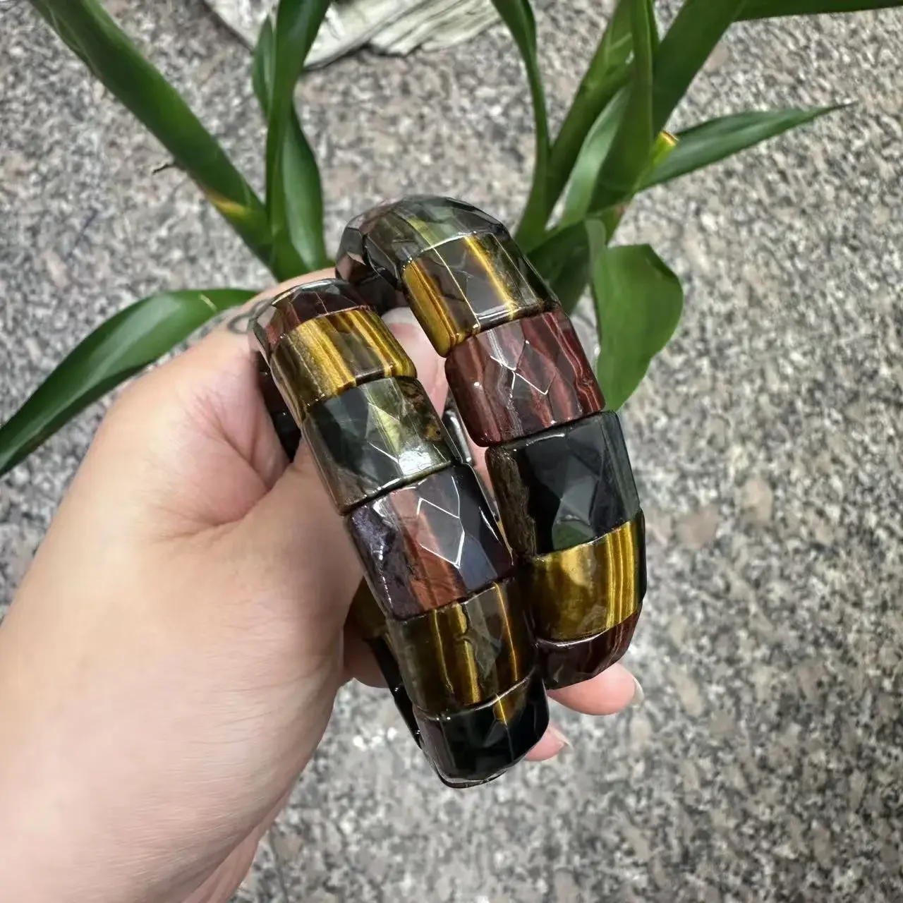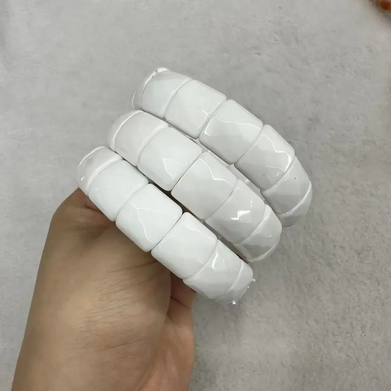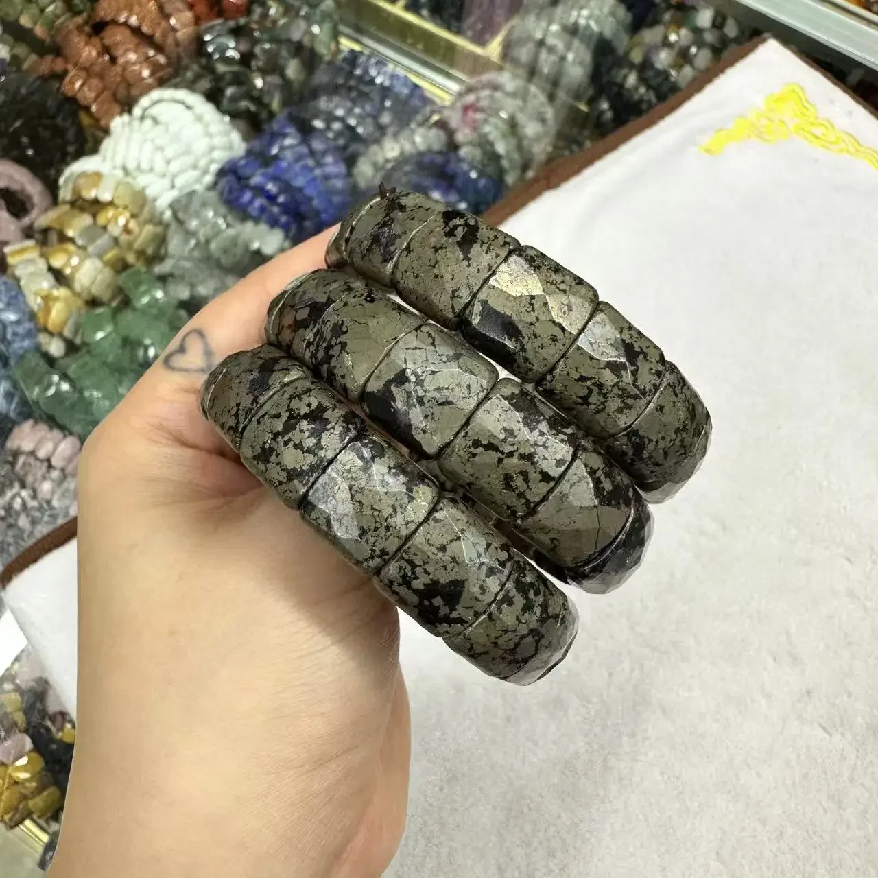 Natural 12x15mm Faceted Stone Unique Crystal Citrine Agate Amethyst Pyrite Fashion Elastic Handcrafted Bracelets Energy Bangles