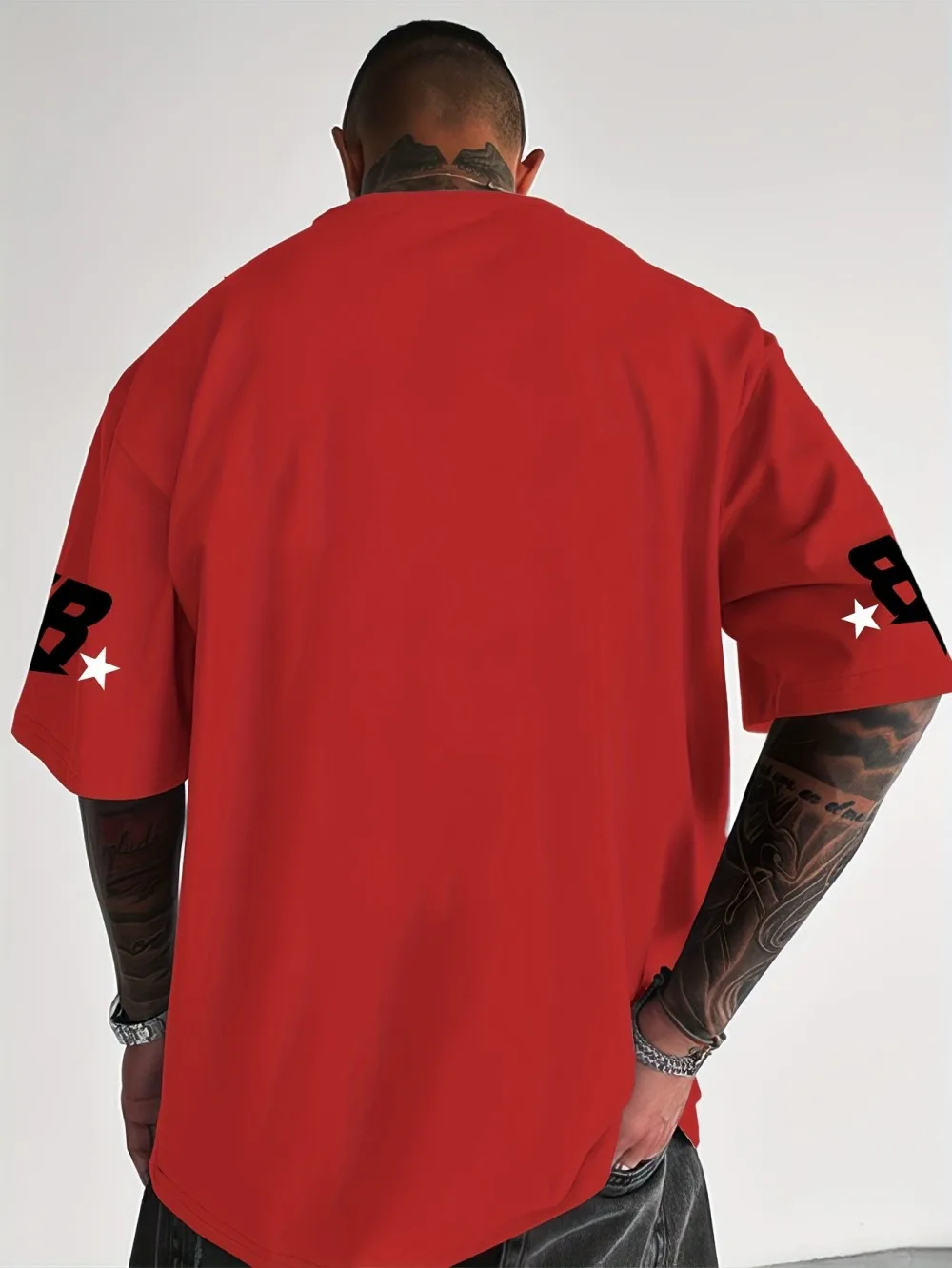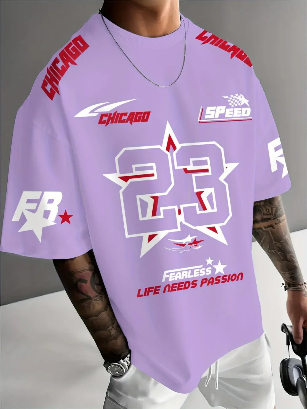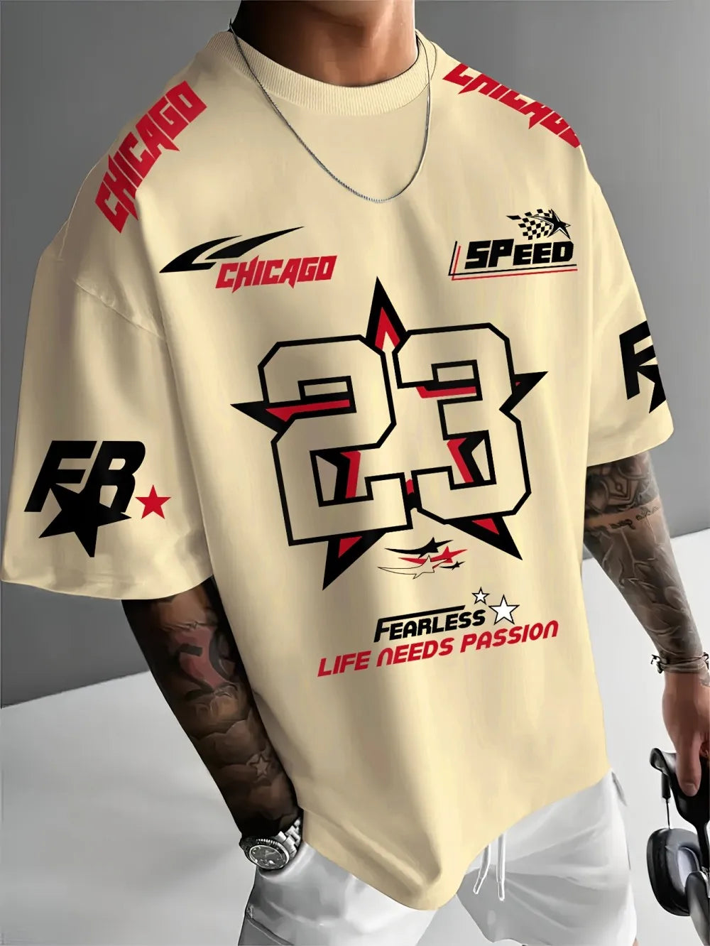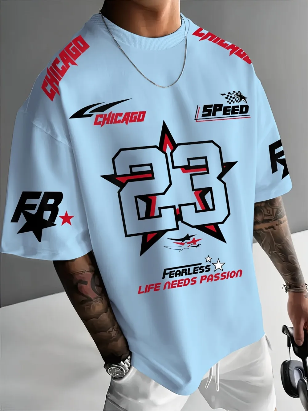 New Summer Men's Chicago Black Red and White Printed 23 Pattern Round Neck Breathable Casual T-shirt Loose Outdoor Top