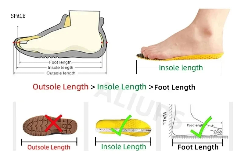 4.Please do not measure the outsole length of your shoes, it is different from the foot length and insole length.
