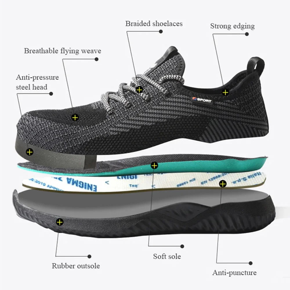 Safety Shoes Men's Work Boots Steel Toe Cap Puncture-Proof Indestructible Security Work Shoes Women Light Comfortable Sneakers