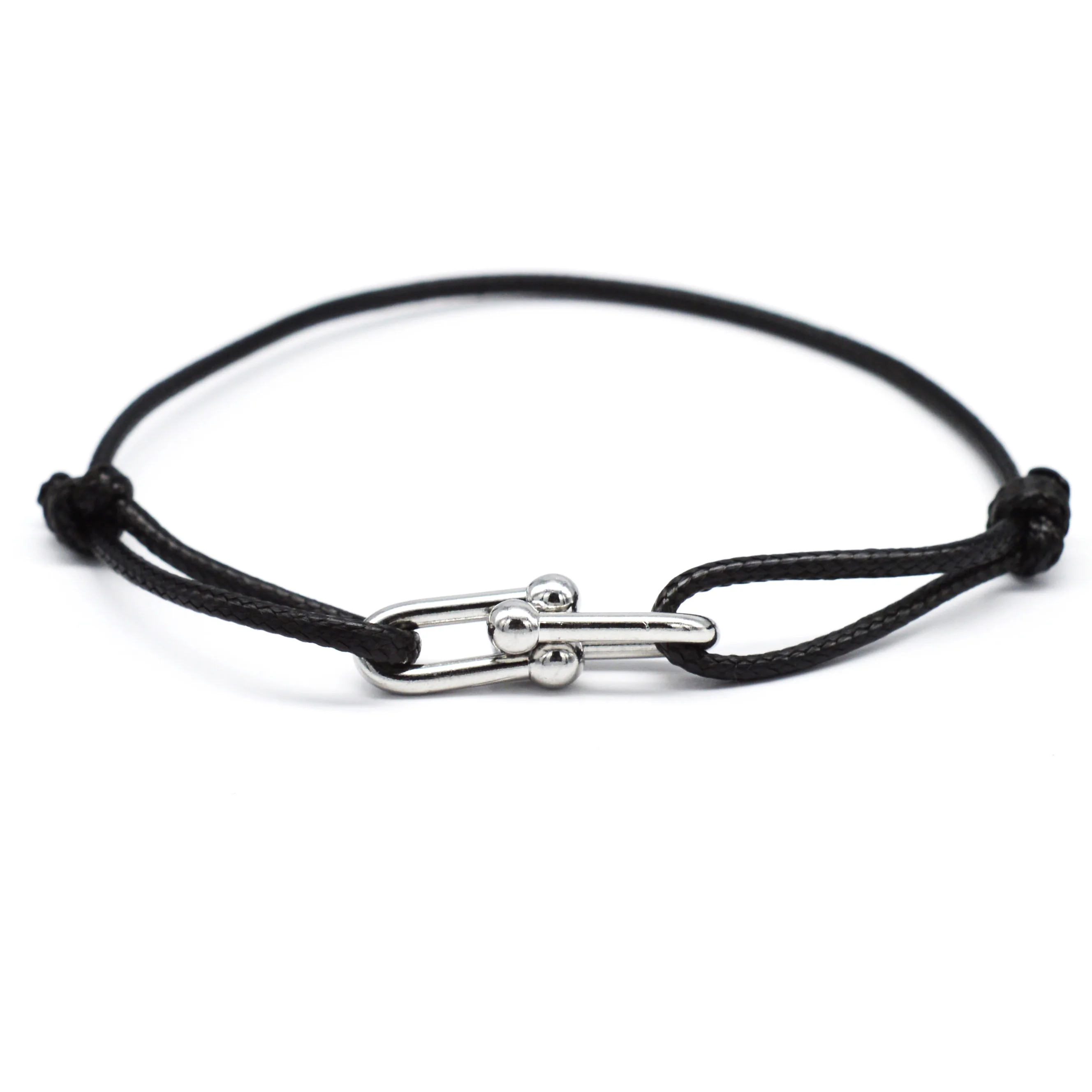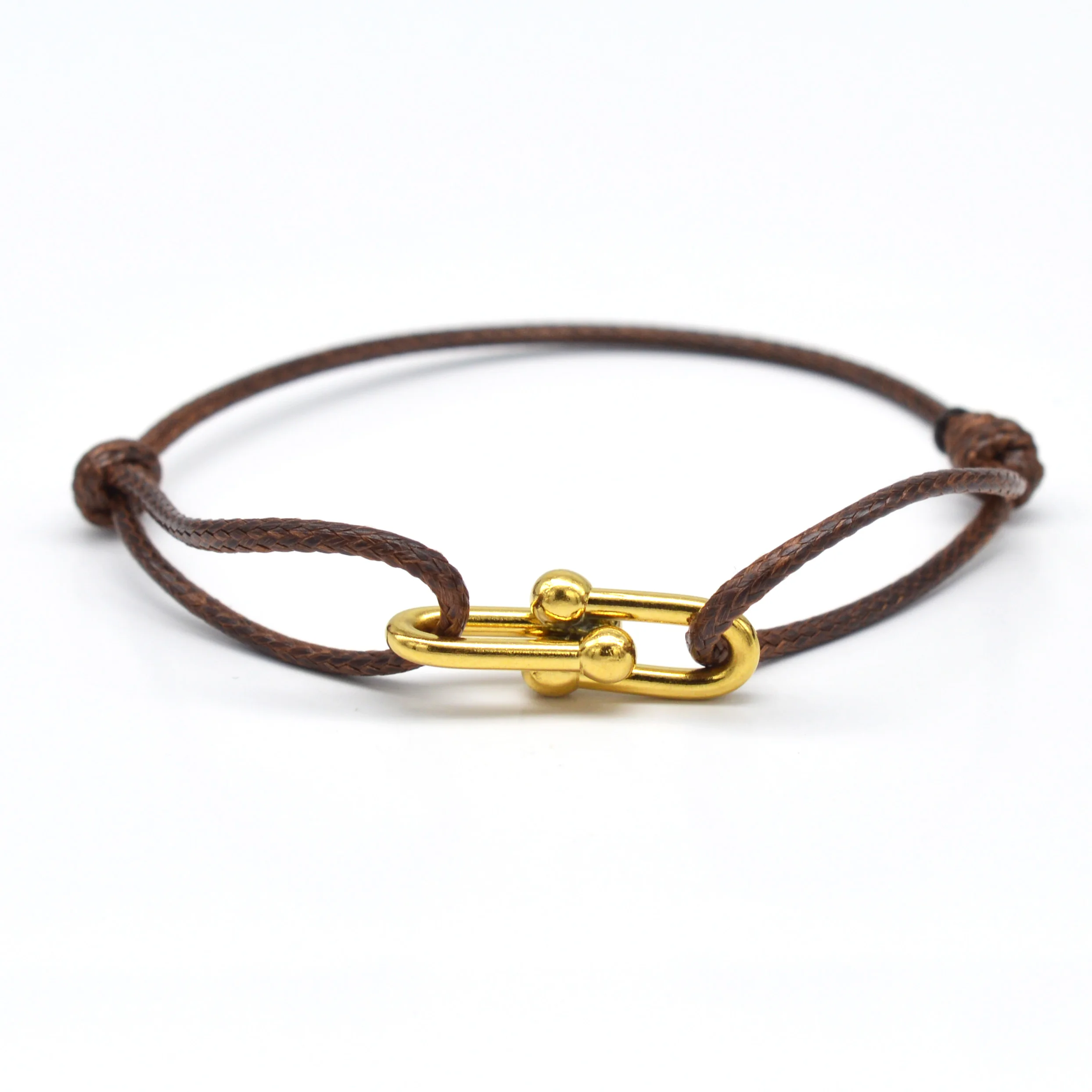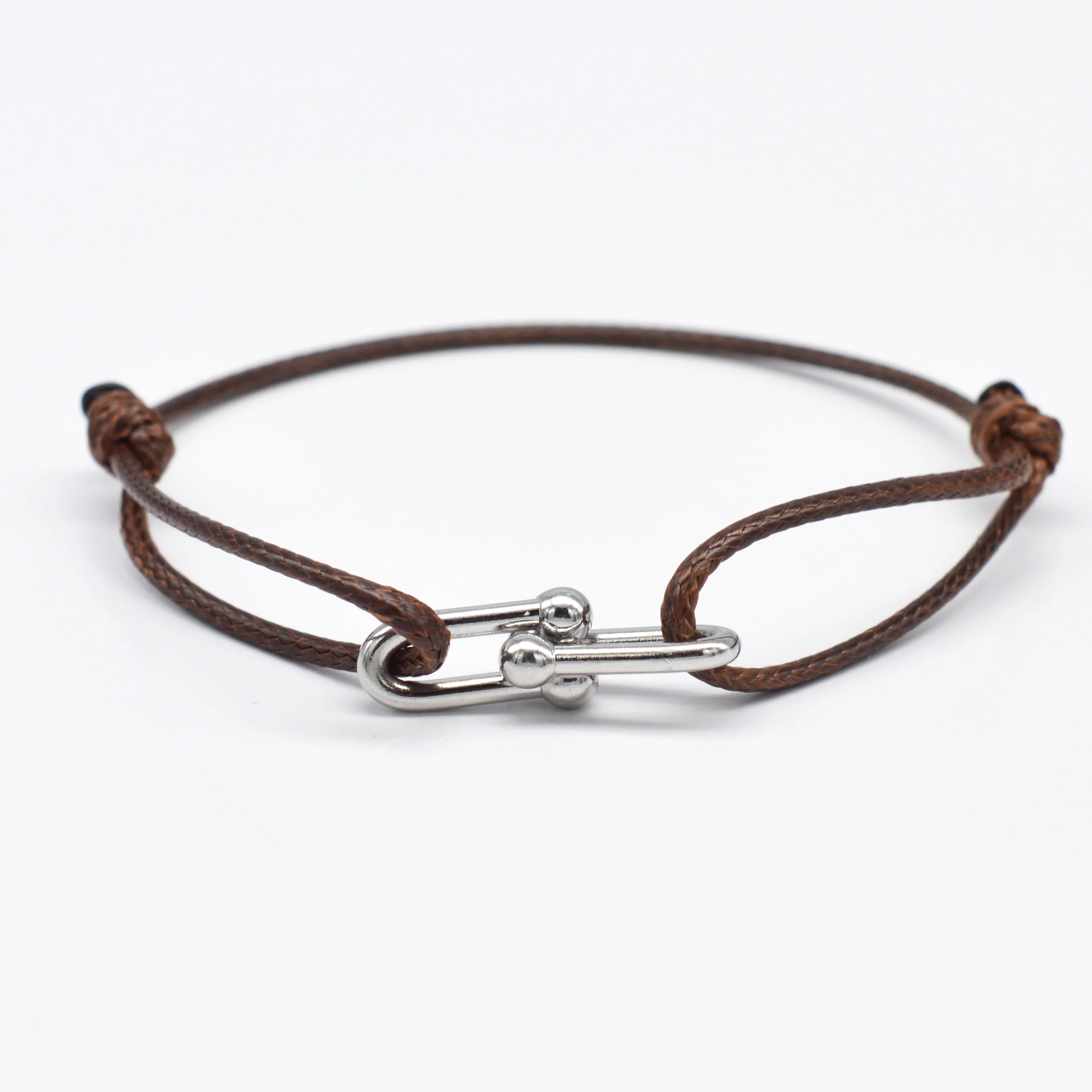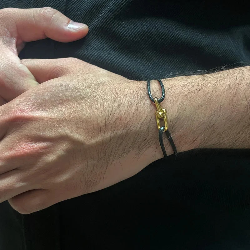 Simple Bamboo Horseshoe Buckle Bracelet Braided Ribbon Adjustable DIY Rope Bracelets Women Men Stainless Steel Jewelry