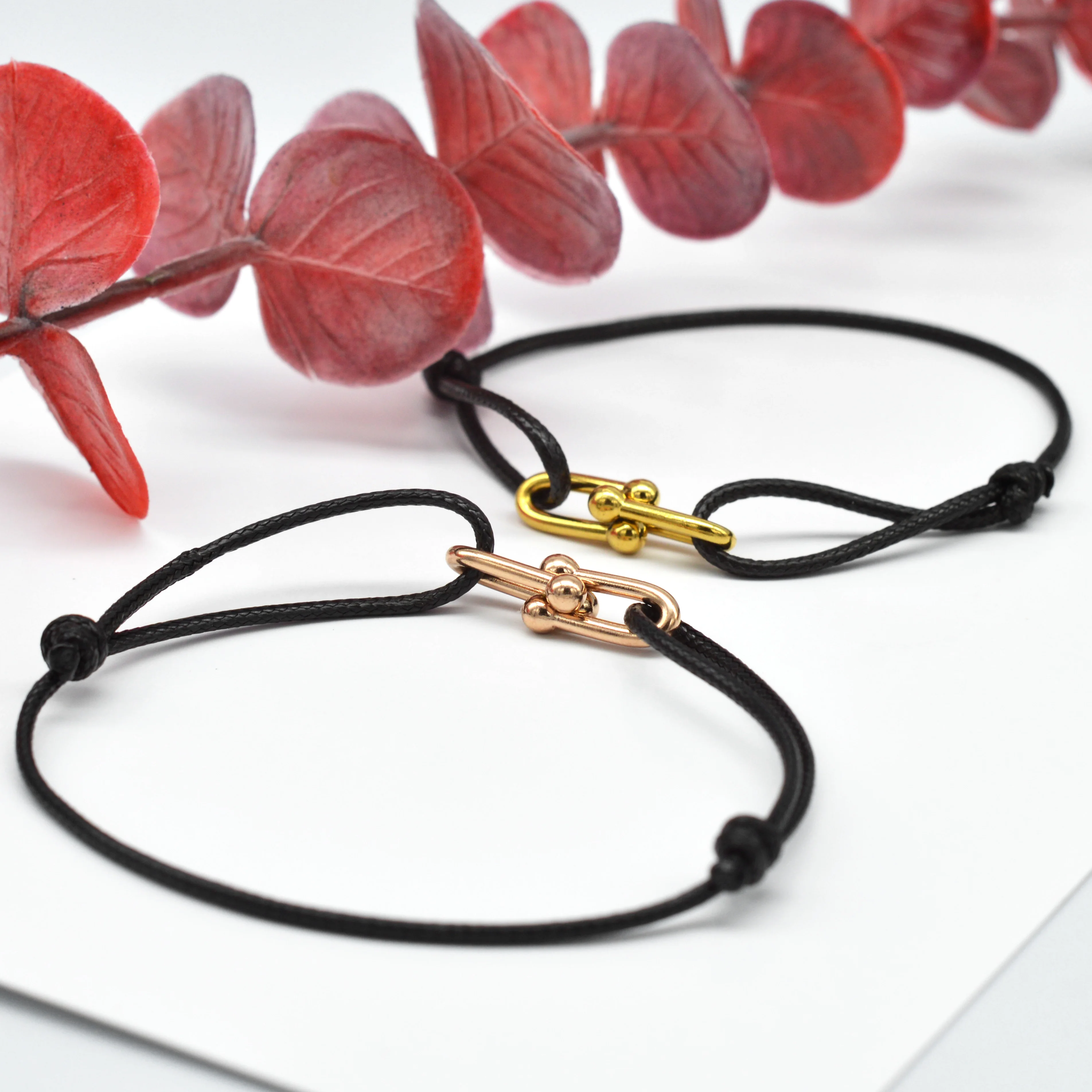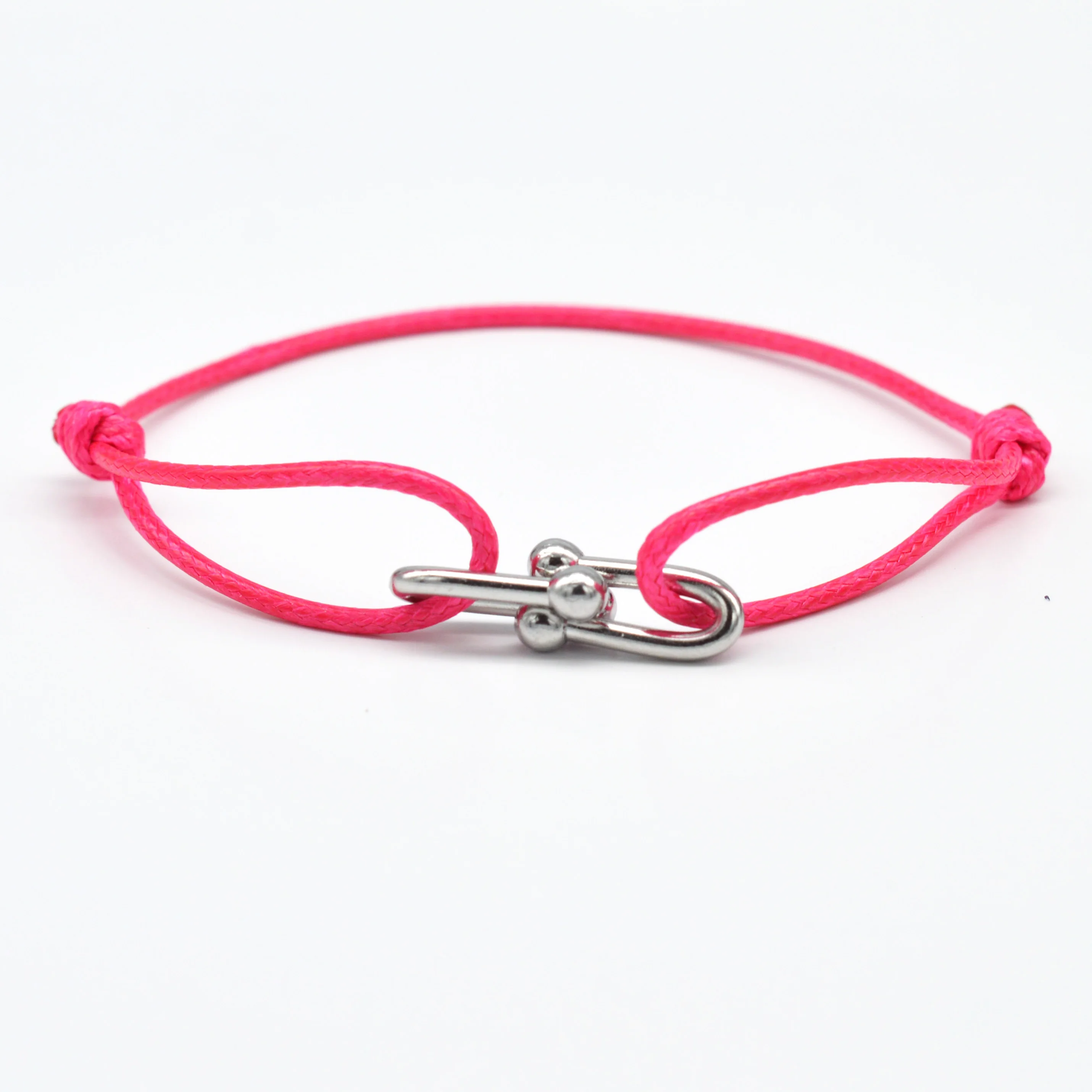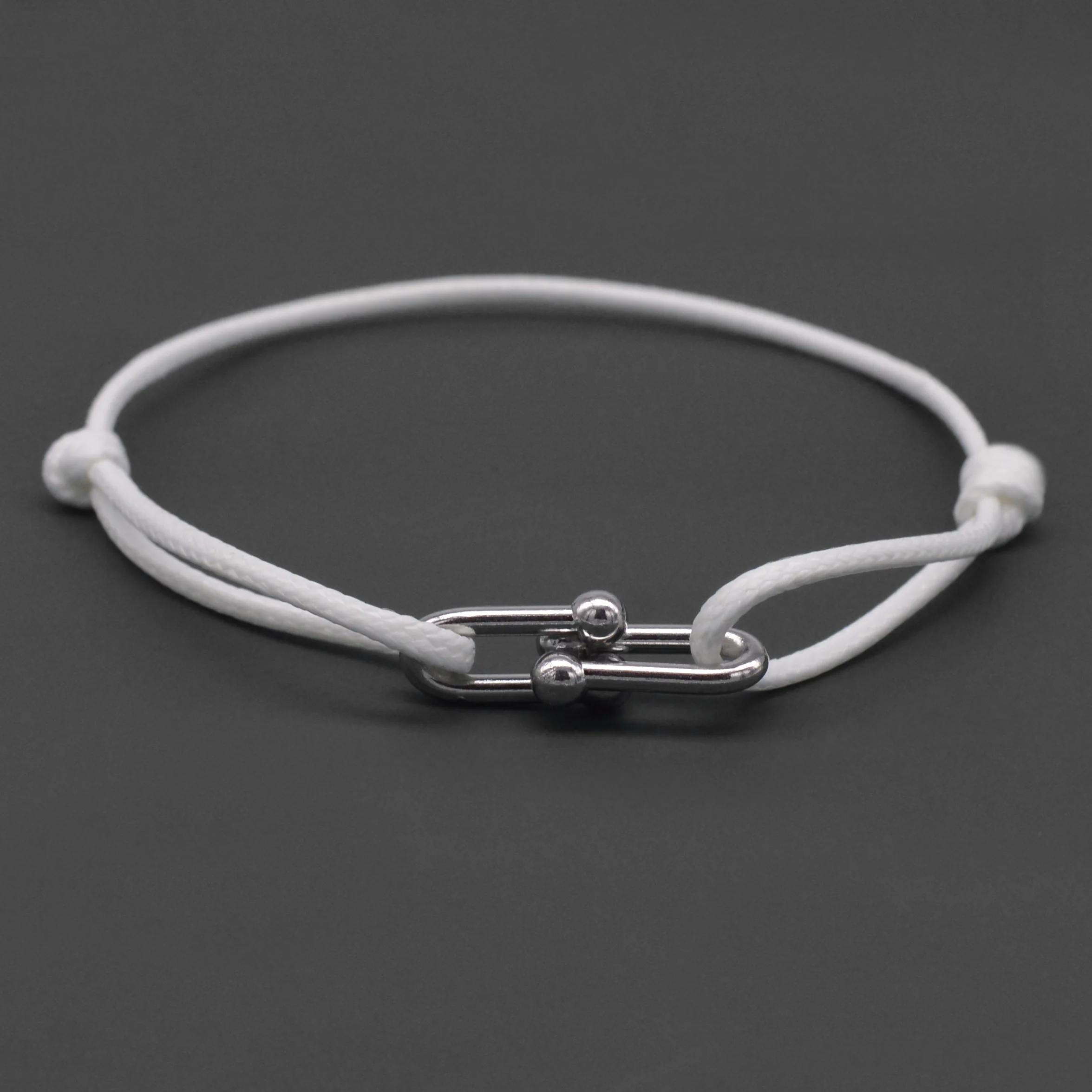 Simple Bamboo Horseshoe Buckle Bracelet Braided Ribbon Adjustable DIY Rope Bracelets Women Men Stainless Steel Jewelry