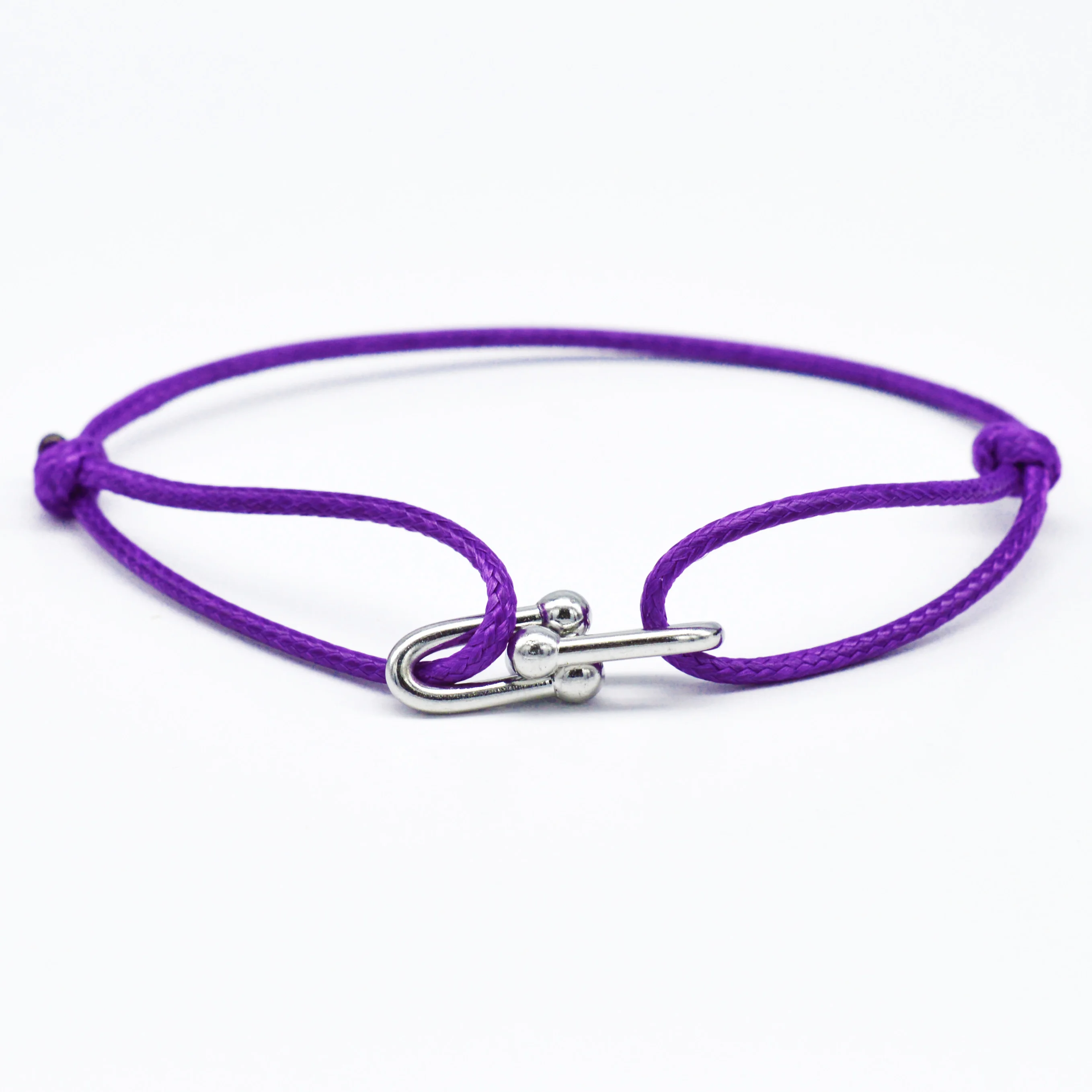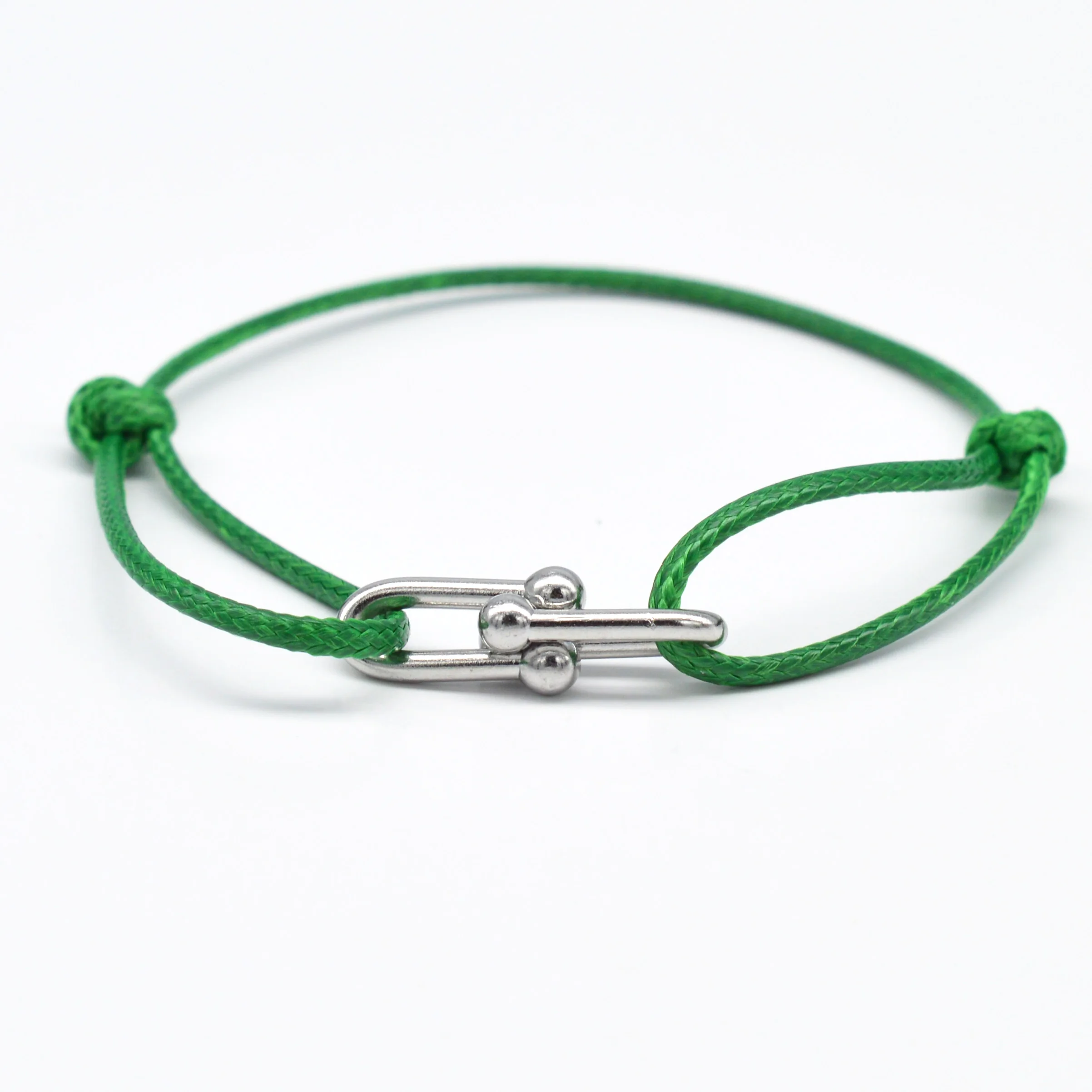Item:Zalman Simple Bamboo Horseshoe Buckle Bracelet Braided Ribbon Adjustable DIY Rope Bracelets Women Men Stainless Steel Jewelry