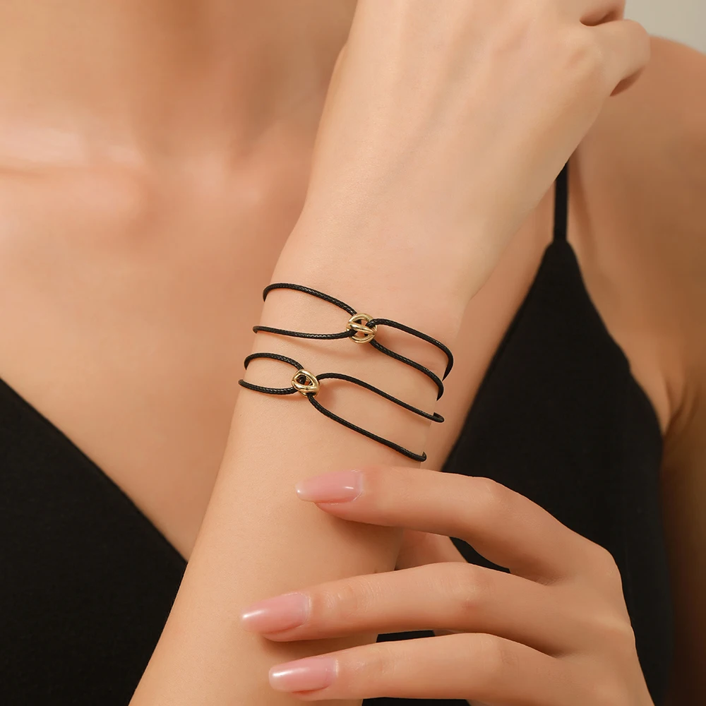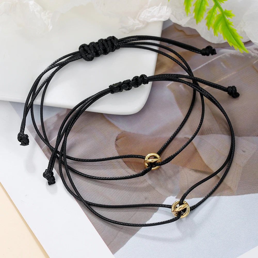 Simple Niche Design Lucky Symbol Bracelet Transfer Bead Couple Bracelet Set Adjustable Woven Bracelet Friendship Bracelet