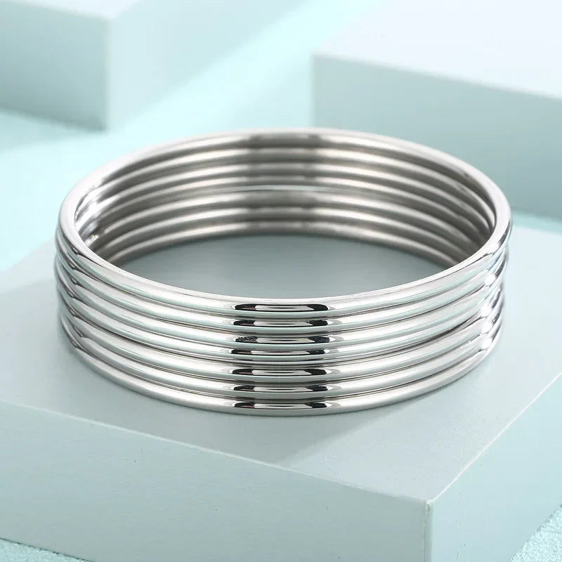 Simple Stainless Steel Bracelet For Women Men Gold Silver Color Geometry Wire Round Bangle Female Trendy Jewelry Wristband Gifts