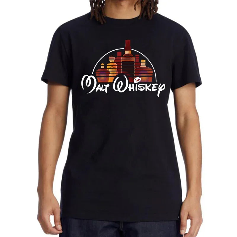 Summer Men's T-shirt 100% Cotton Funny Malt Whiskey Print Summer Loose O-neck Cool T Shirt for Men Short Sleeve T-shirt Male Tee