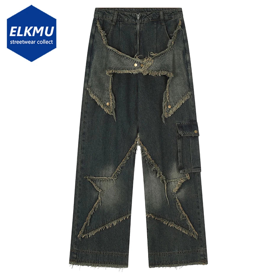 Vintage Baggy Jeans Star Patchwork Loose Straight Denim Pants