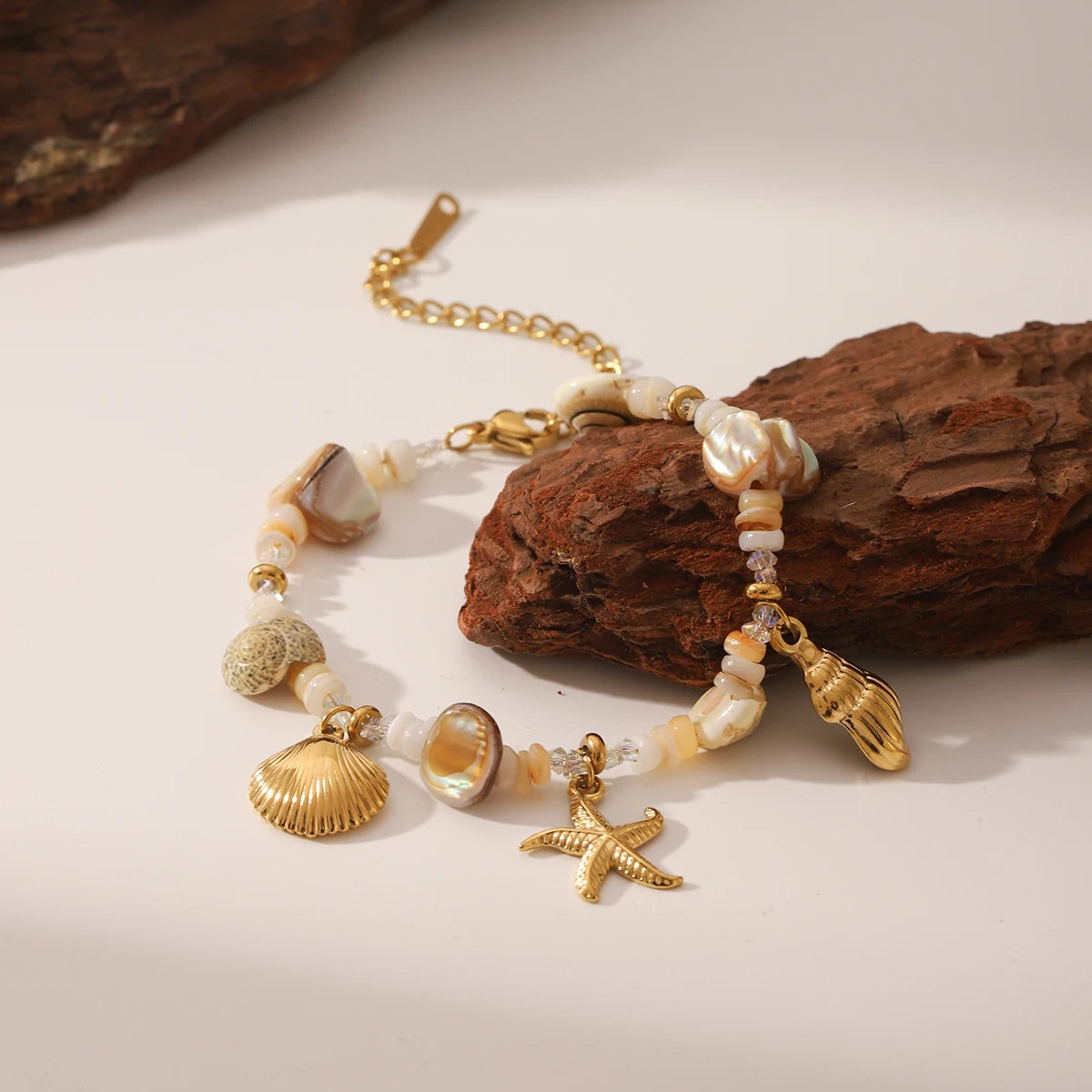 Vintage Real Shell Pendant Bracelet Woman Stainless Steel Adjustable Summer Beach Starfish Conch Hand Chain Jewellery Waterproof