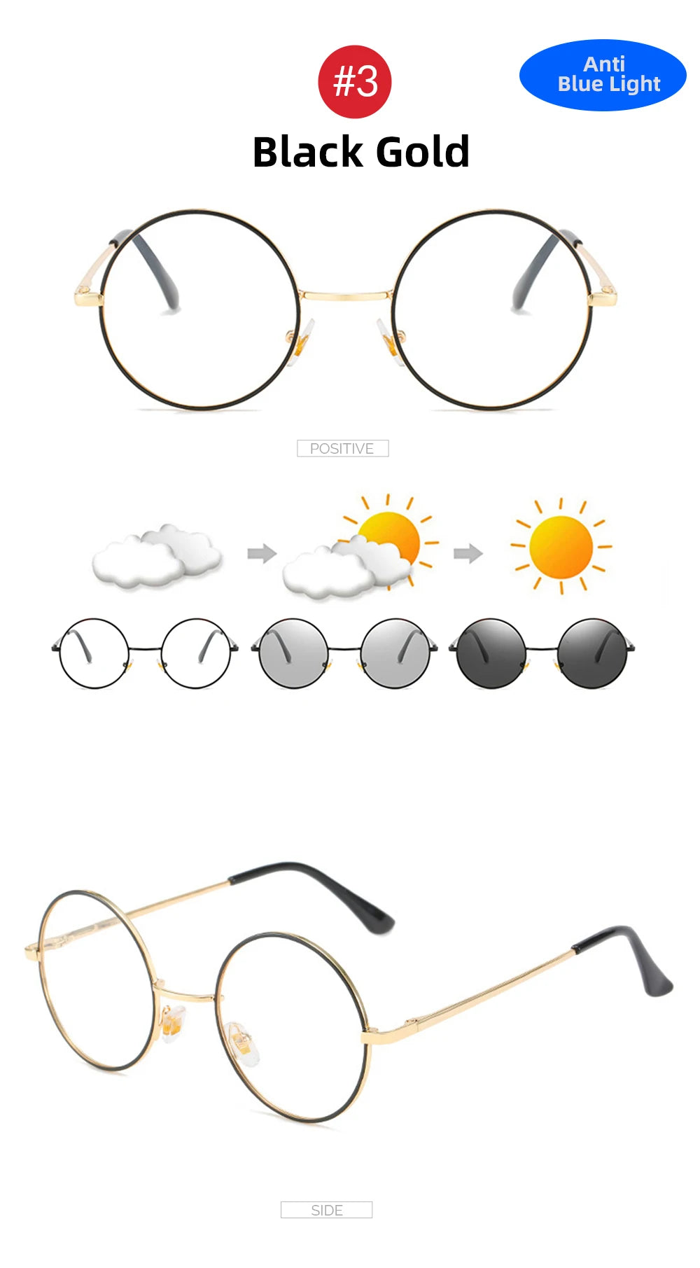 Frame Color: Black, Rose Gold, Black Silver, Black Gold