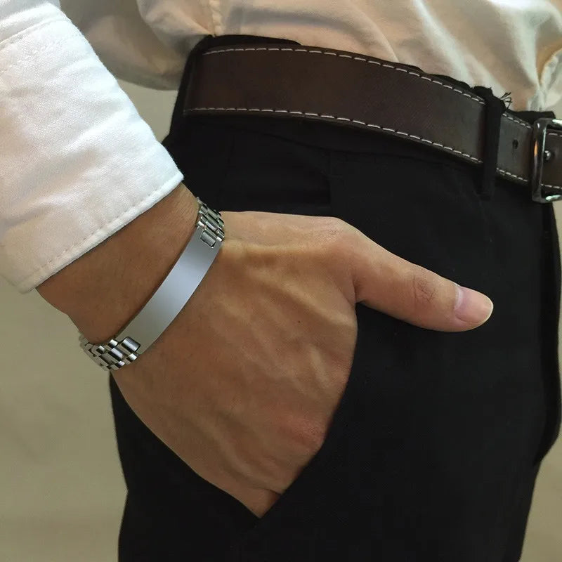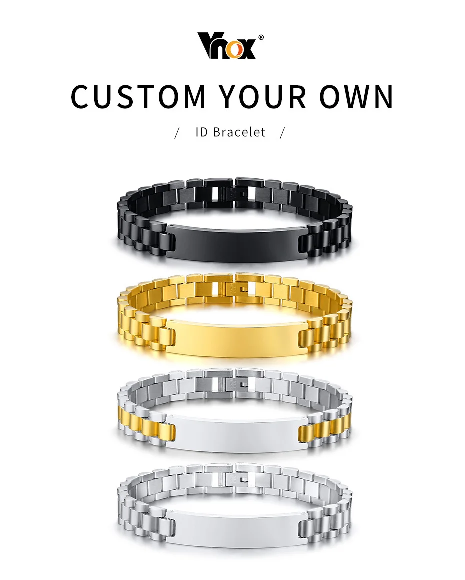 Vnox Free Personalize 10mm Stainless Steel ID Bracelets for Men Casual Male Pulseira Valentine's Day Gift for Him Drop Shipping