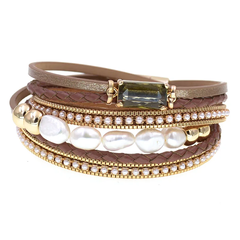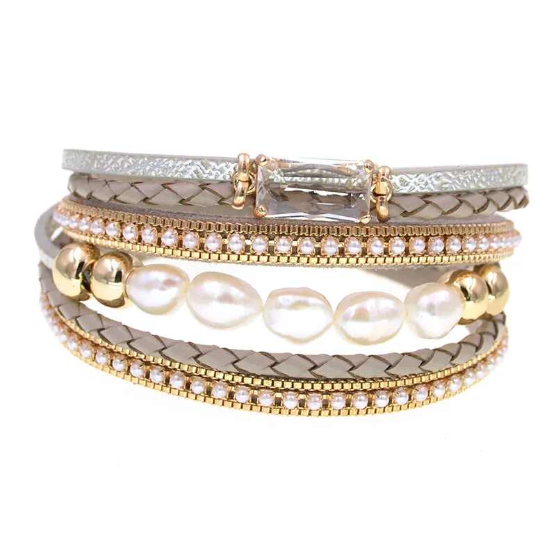 WELLMORE NEW leather bracelets for women fashion fresh water pearls charm Bracelets & Bangles Female Jewelry dropshipping
