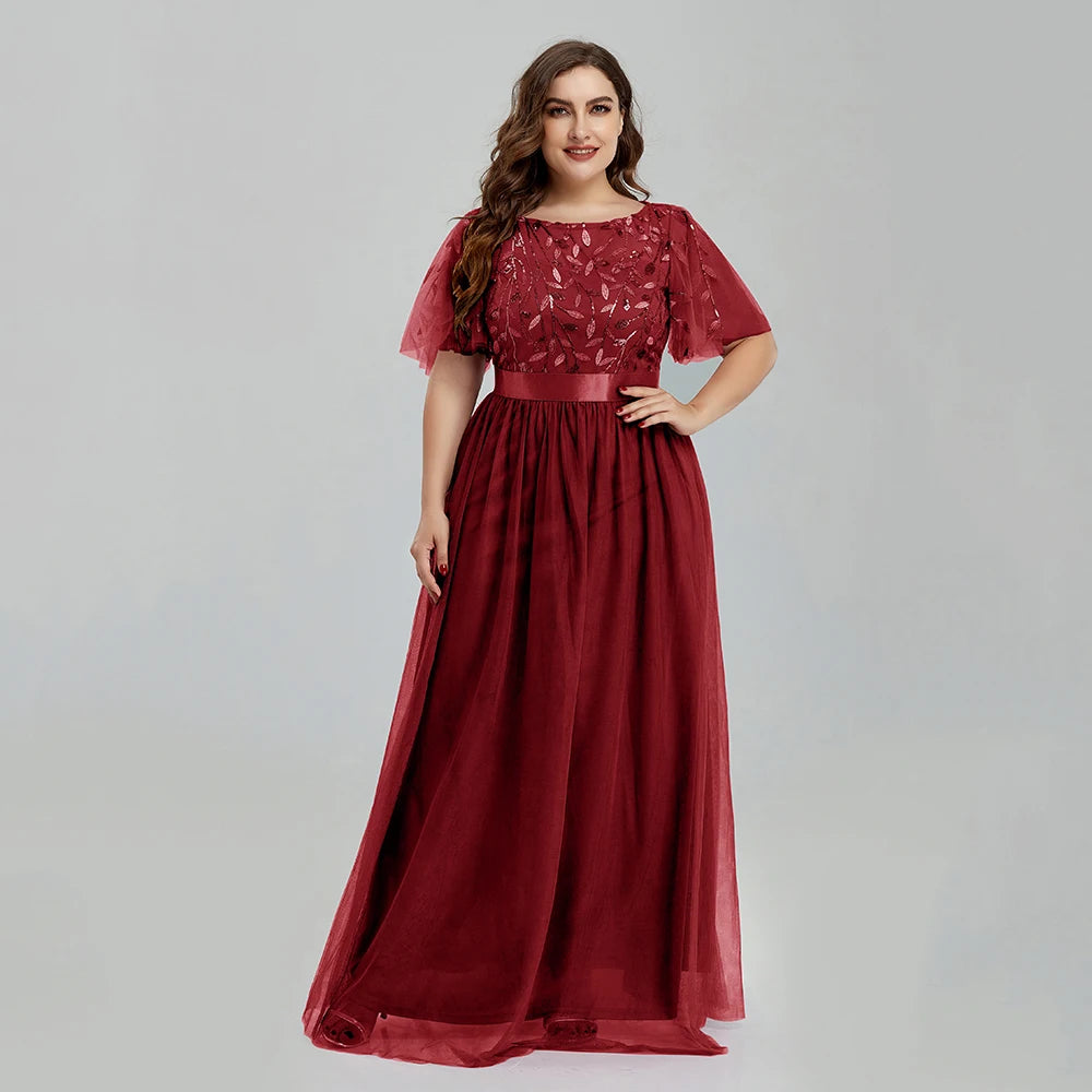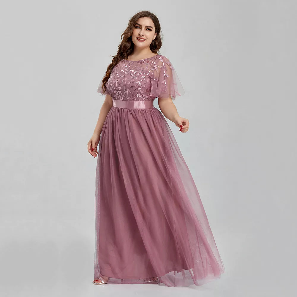 Looking for a formal dress that flatters your figure and makes you feel absolutely radiant? Our women's plus size mesh A-line sequin embroidery evening dress is designed to do just that. This beautiful gown is perfect for homecoming, prom, weddings, or any other special occasion where you want to look and feel your best. The flowing A-line silhouette, combined with the delicate mesh, shimmering sequins, and intricate embroidery, creates a look that is both elegant and effortlessly chic. This dress is designed specifically with plus-size women in mind, ensuring a comfortable and flattering fit.