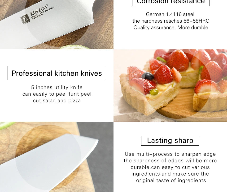 - High-Quality Stainless Steel: Crafted from premium stainless steel, this utility knife boasts exceptional sharpness and durability. Its resistance to rust and corrosion ensures that your knife remains a reliable companion in the kitchen for years to come, making it an integral part of your kitchen knives collection.