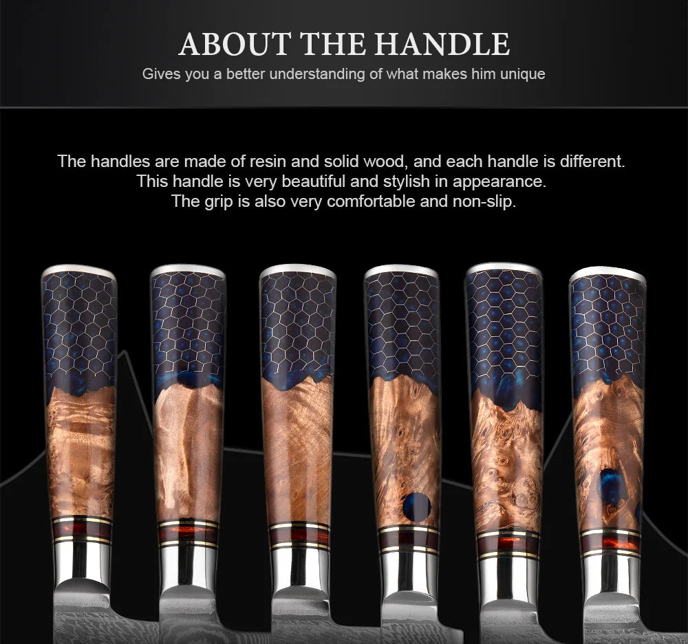 Name: 1-9 PCS Damascus Steel Kitchen Knives Blue Resin Handle