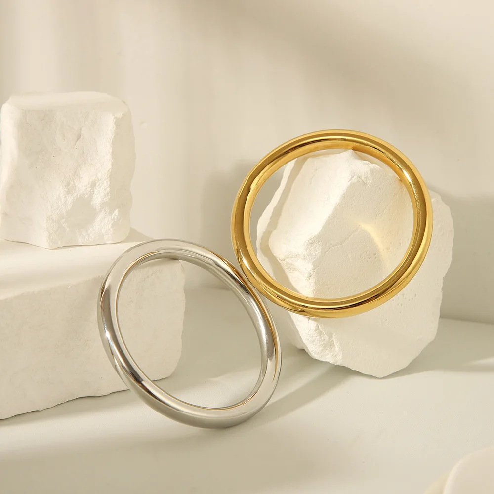 Yhpup 65mm Polished Textured Waterproof Stainless Steel Big Bracelet Bangle Statement Glossy Minimalist Jewelry High Quality