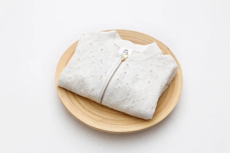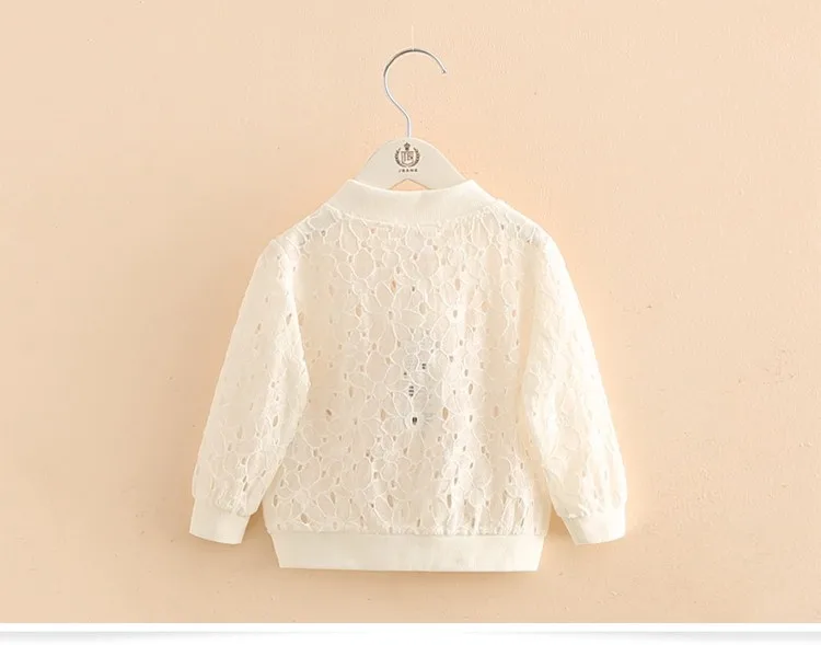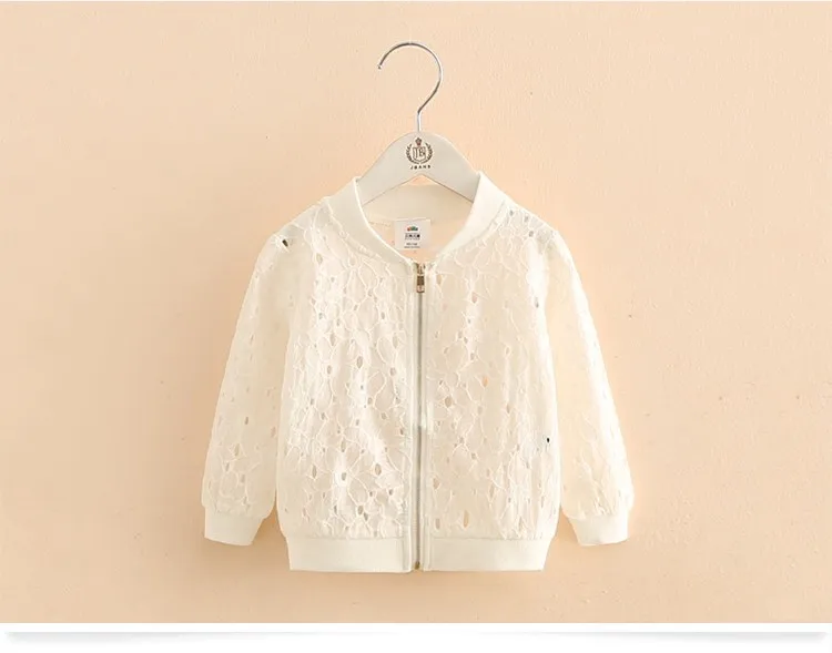 New Spring Autumn Summer 2 3 4 6 8 10 12 Year Long Sleeve Sunscreen White Flower Hollow Out Kids Baby Girl Baseball Jacket