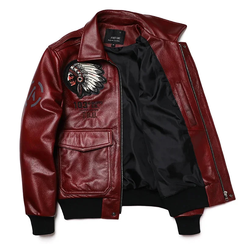 Discover the perfect blend of tradition and modernity with the 2024 New Indian Embroidery A2 Flying Pilot Suit Genuine Leather Jacket Men’s. This jacket is designed for those who appreciate the finer things in life and want to make a bold statement.
