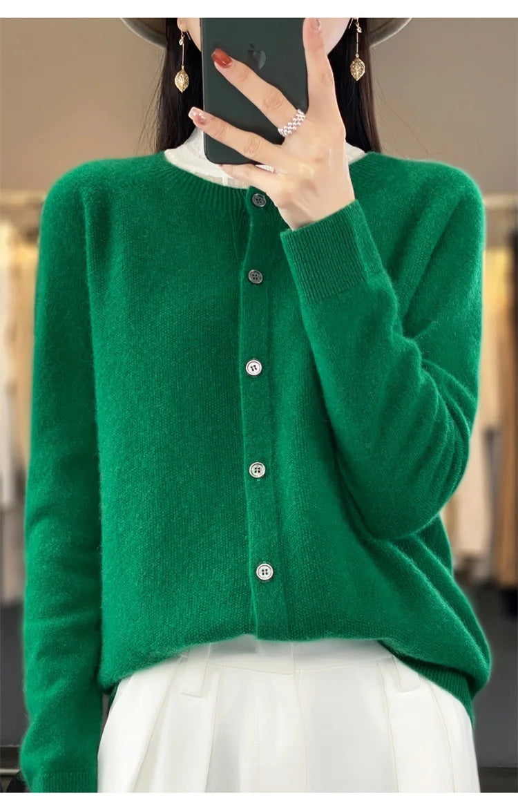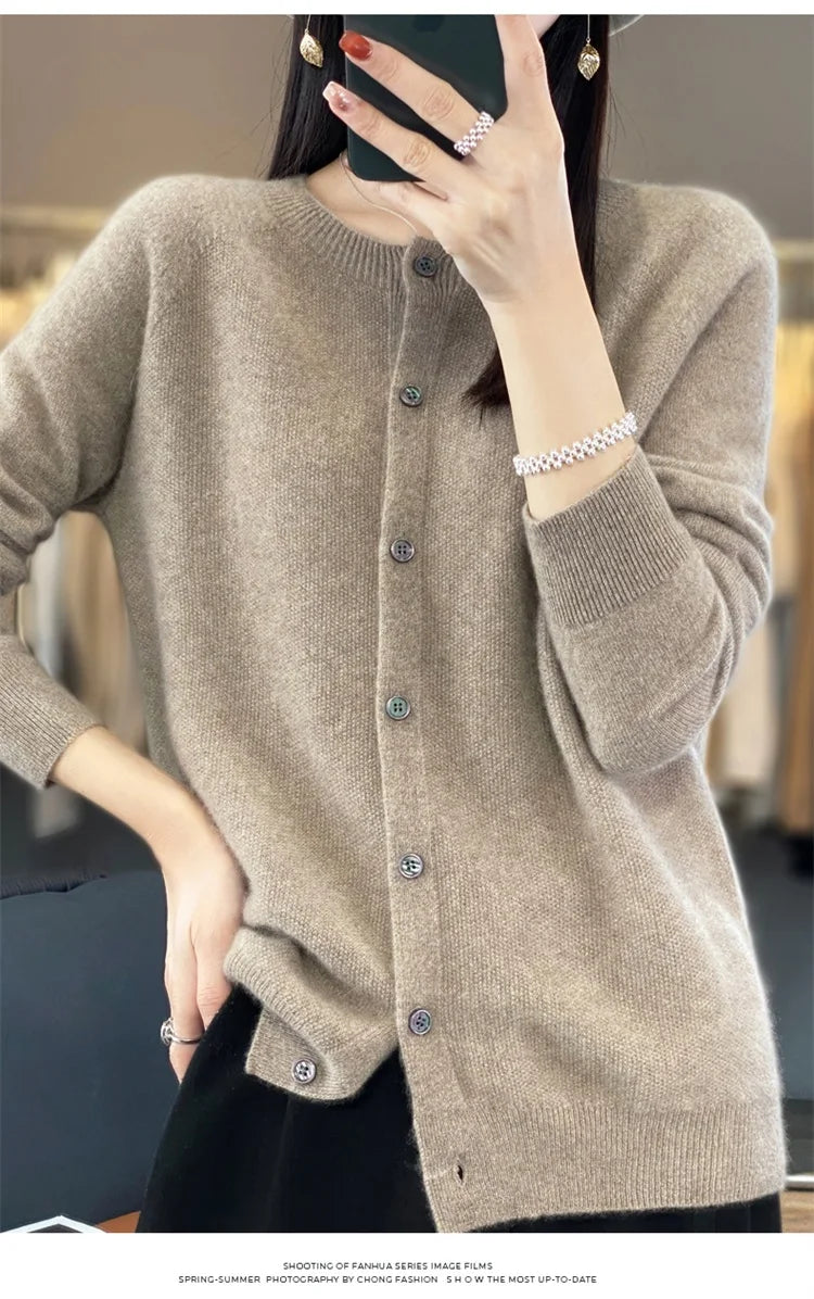 Upgrade your wardrobe with the Spring and Autumn New 100% Pure Merino Cashmere Sweater for Women. Experience the blend of luxury and functionality that only our store can provide. Shop now and discover the perfect addition to your collection of cardigans and sweaters.