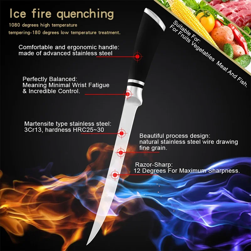 6inch Sharp Chef Slaughtering Fish Meat Cleaver Professional Stainless Steel Boning Knife