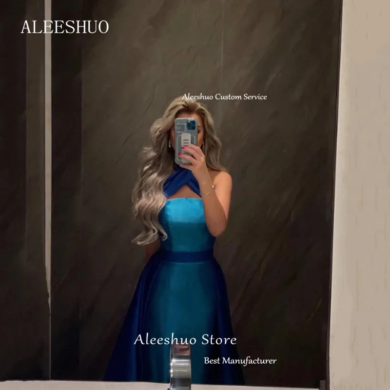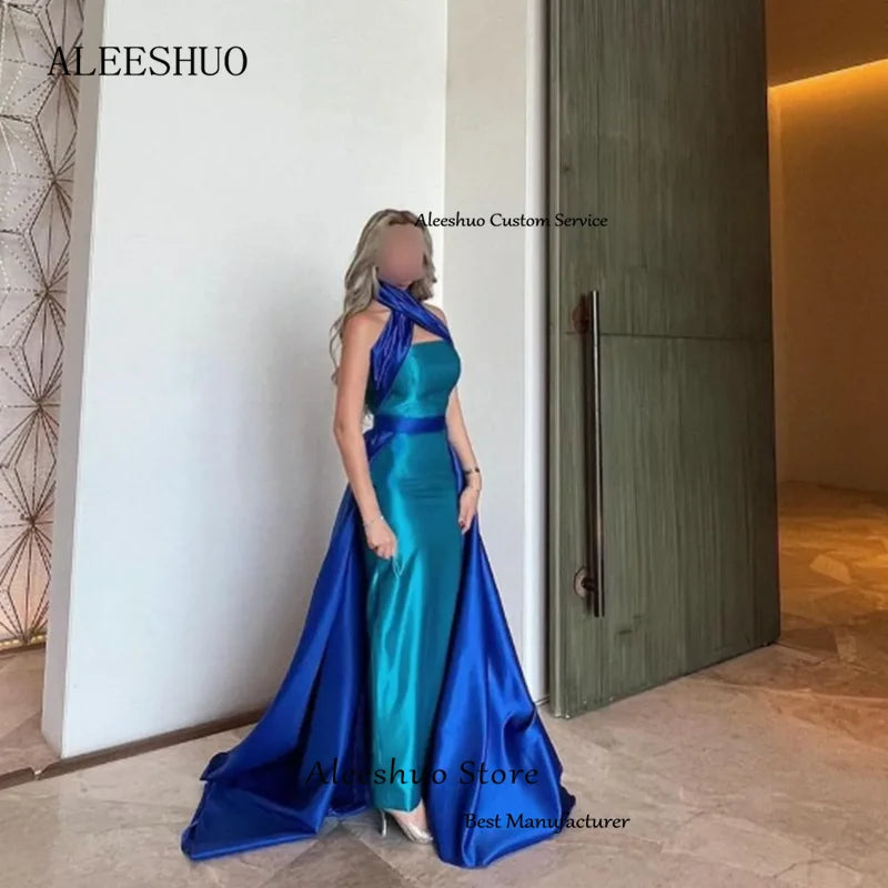 Our blue mermaid satin prom dresses are crafted with meticulous attention to detail. The halter neckline adds a touch of sophistication, while the sleeveless design ensures comfort and freedom of movement. The mermaid silhouette hugs your curves in all the right places, creating a dramatic and stunning look that is sure to turn heads at any event.