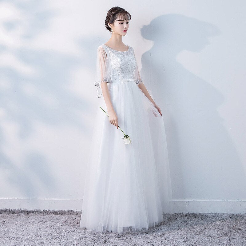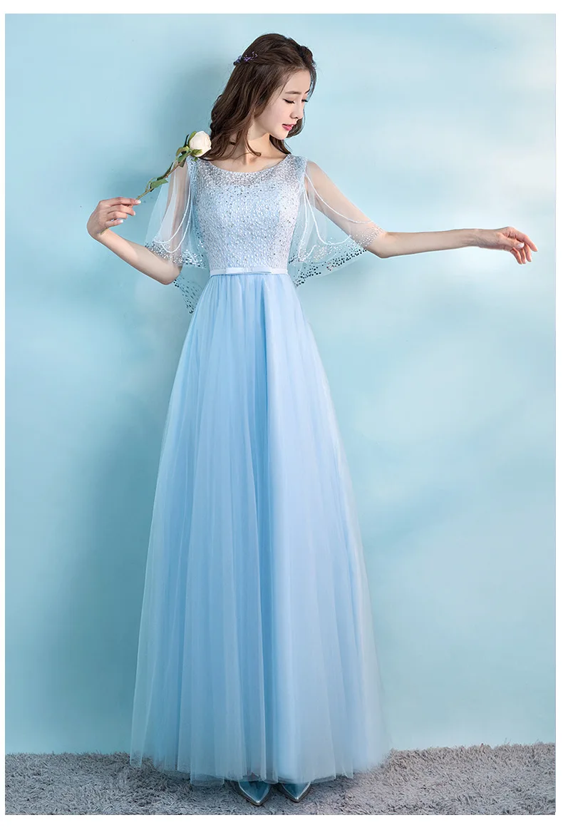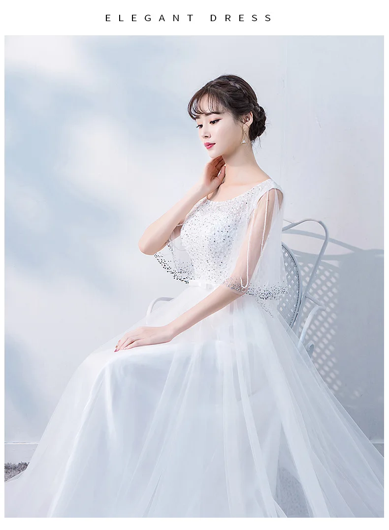 Unique and SEO-Friendly Product Description for Evening Wear Dresses: O Neck Tulle Evening Dresses Long Crystal Beading Prom