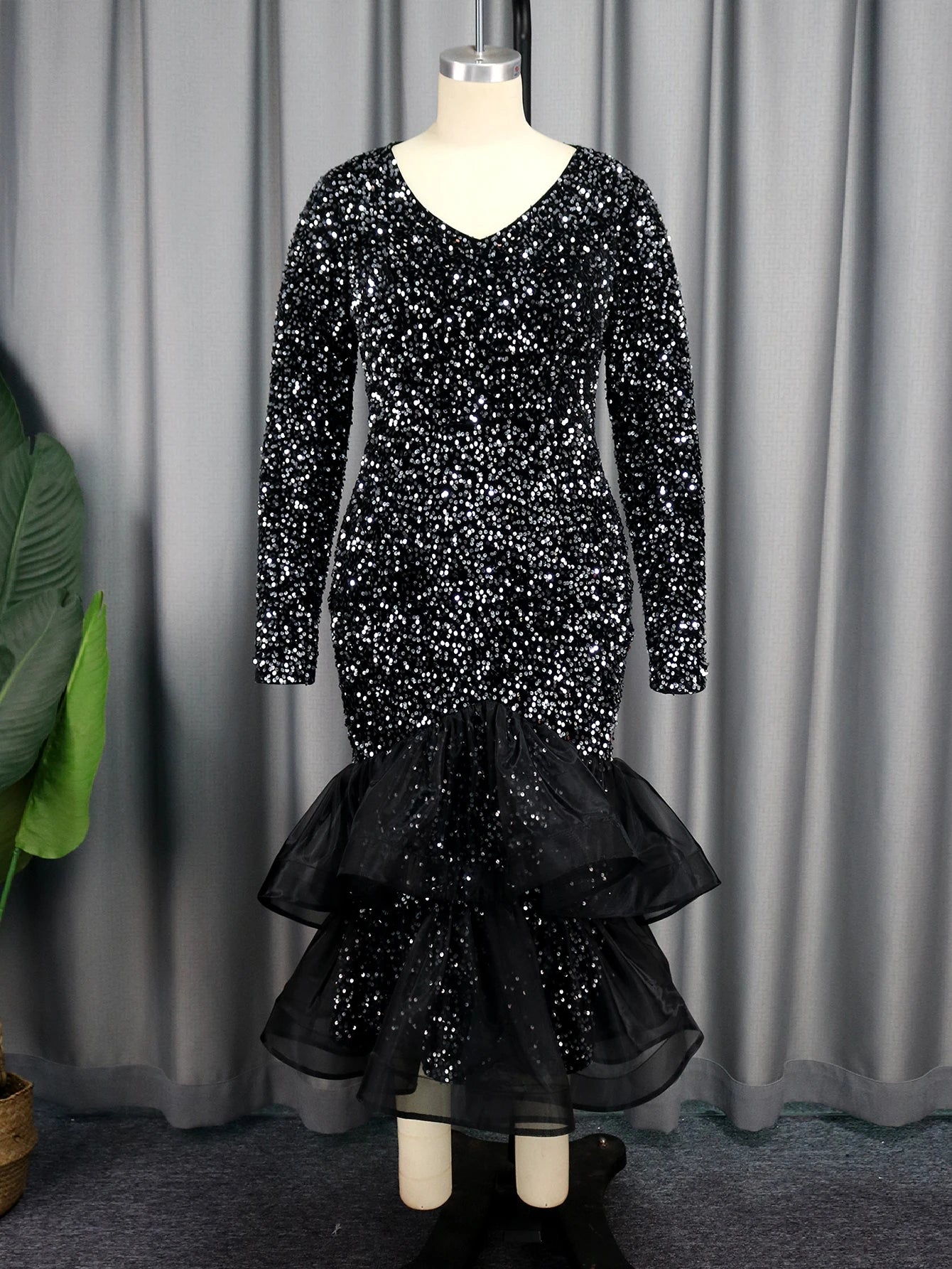 Make a Statement with a Glamorous Long Sleeve Glitter Velvet Dress