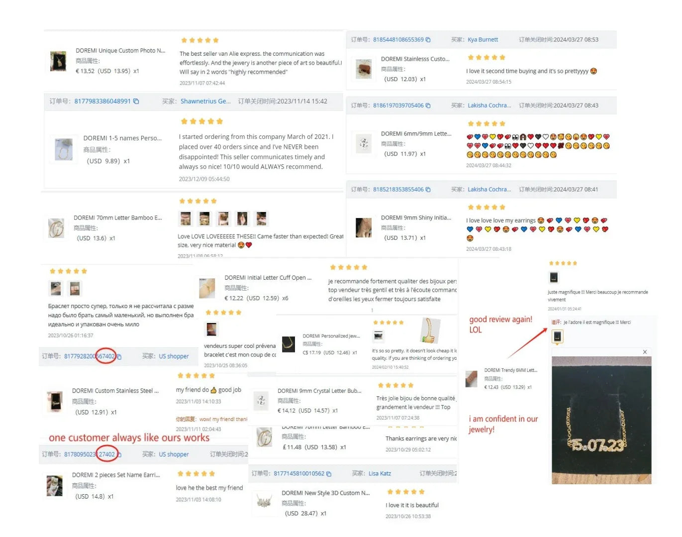 A3:Our custom jewelry mostly did by stainless steel materials, no tarnish, no allergic, nice surface and vacoumn plating process. each finished order will show you picture for inspection before shipping. |