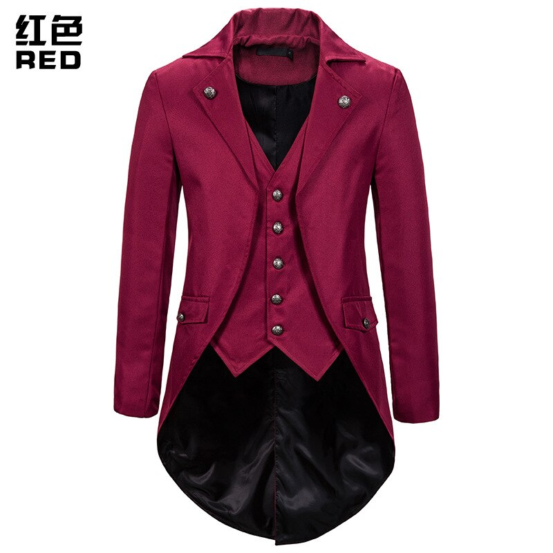 Gothic Victorian Tailcoat Jacket Men Steampunk Medieval Cosplay Costume Male