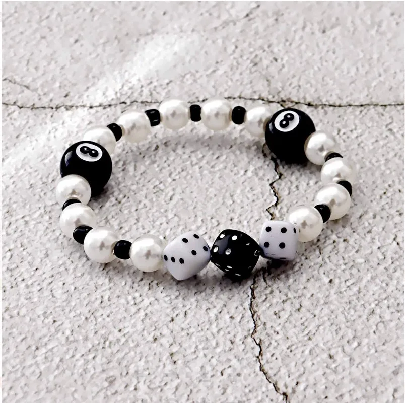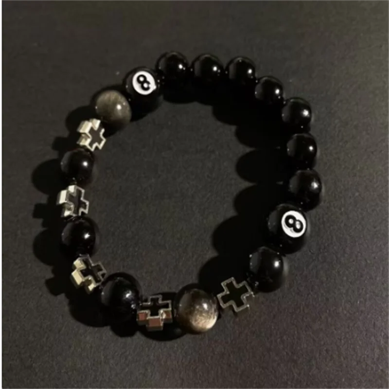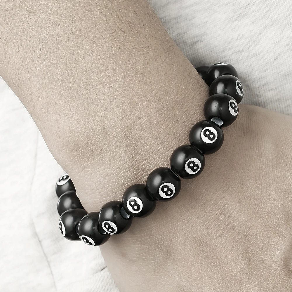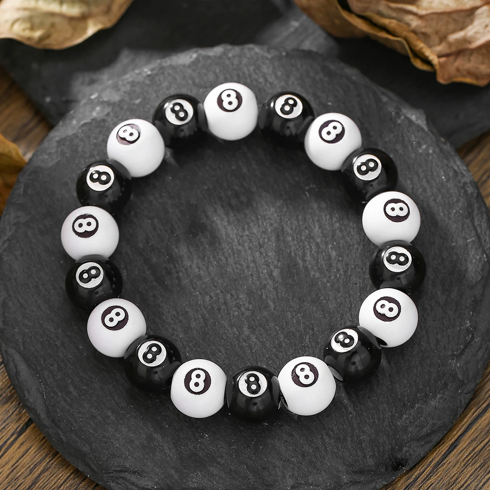 Hot-Selling Creative Billiards Black 8 Bead Bracelet Billiards Figure Eight Elastic Bracelet Accessory Couple Bracelet Jewelry