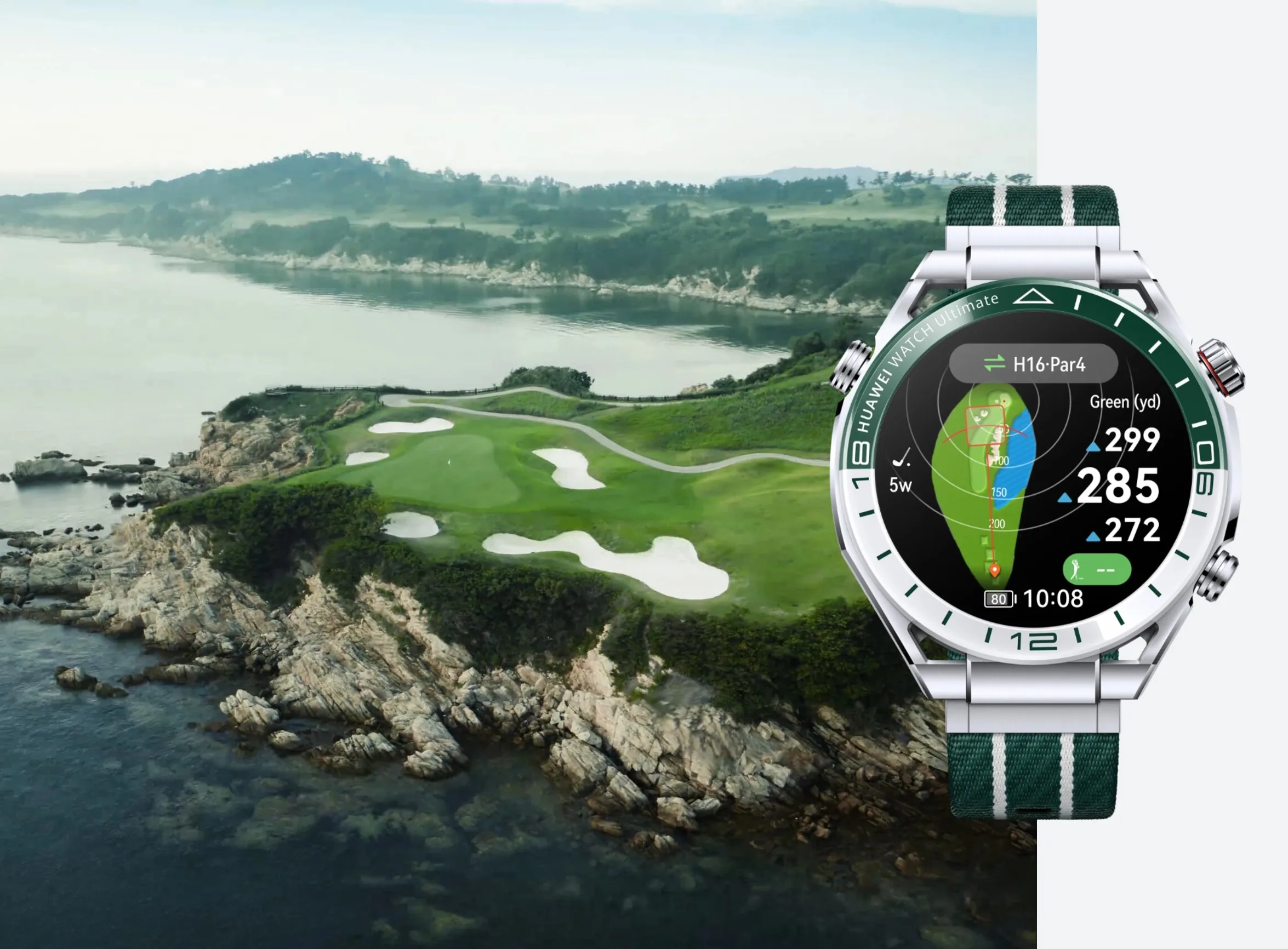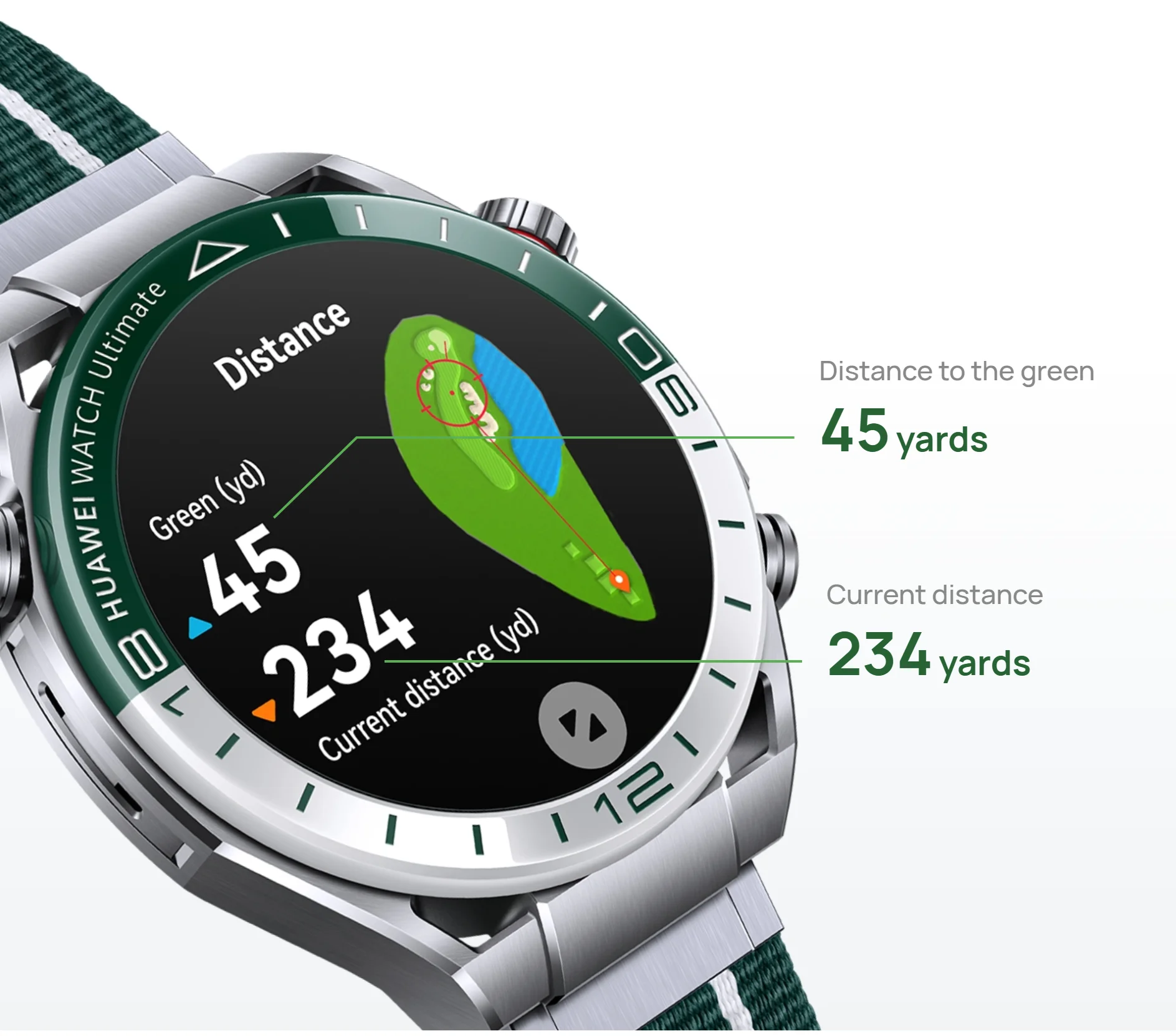 The Golf Courses Map feature is available in certain markets only. Availability is subject to official releases and actual conditions. For details about your country/region and the list of supported cities, visit https://consumer.huawei.com/en/support/content/en-us16014632/. The feature will be made available on the HUAWEI WATCH Ultimate Black and Blue editions via OTA updates.