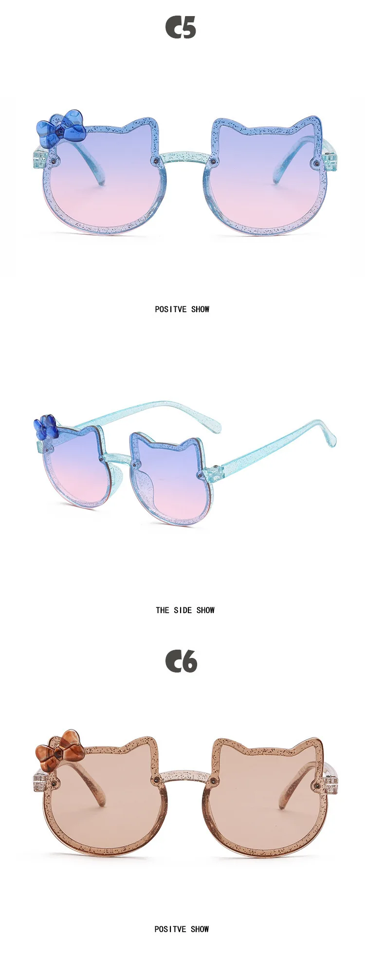 Kids Sunglasses Girls Boys Shiny Bowknot Sun Glasses Lovely Cat Children Eyewear Fashion Gradient Eyeglasses UV400