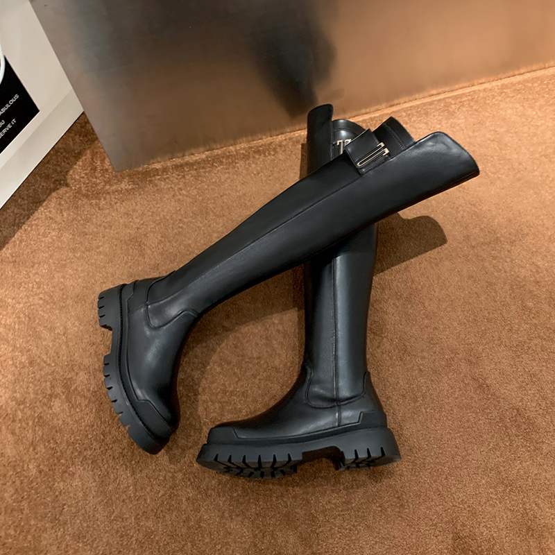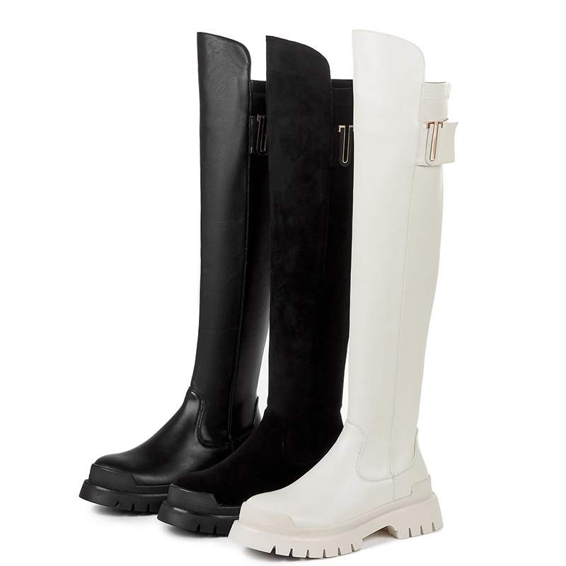 cow leather platform thigh high boots round toe casual