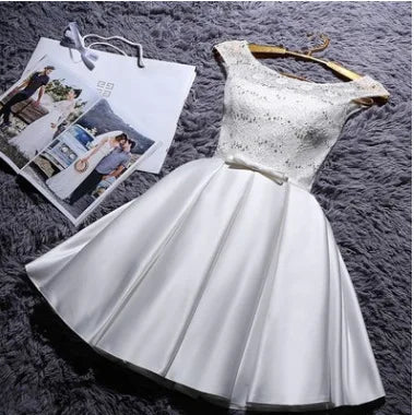 Are you searching for a homecoming dress that's both chic and flattering? Look no further! Our A-line short satin sleeveless gown is the perfect choice for homecoming, prom, parties, and other special occasions. This charming dress is designed to make you feel confident and radiant all night long. Searching for "prom gowns near me" or "formal dress stores near me"? Your search ends here!