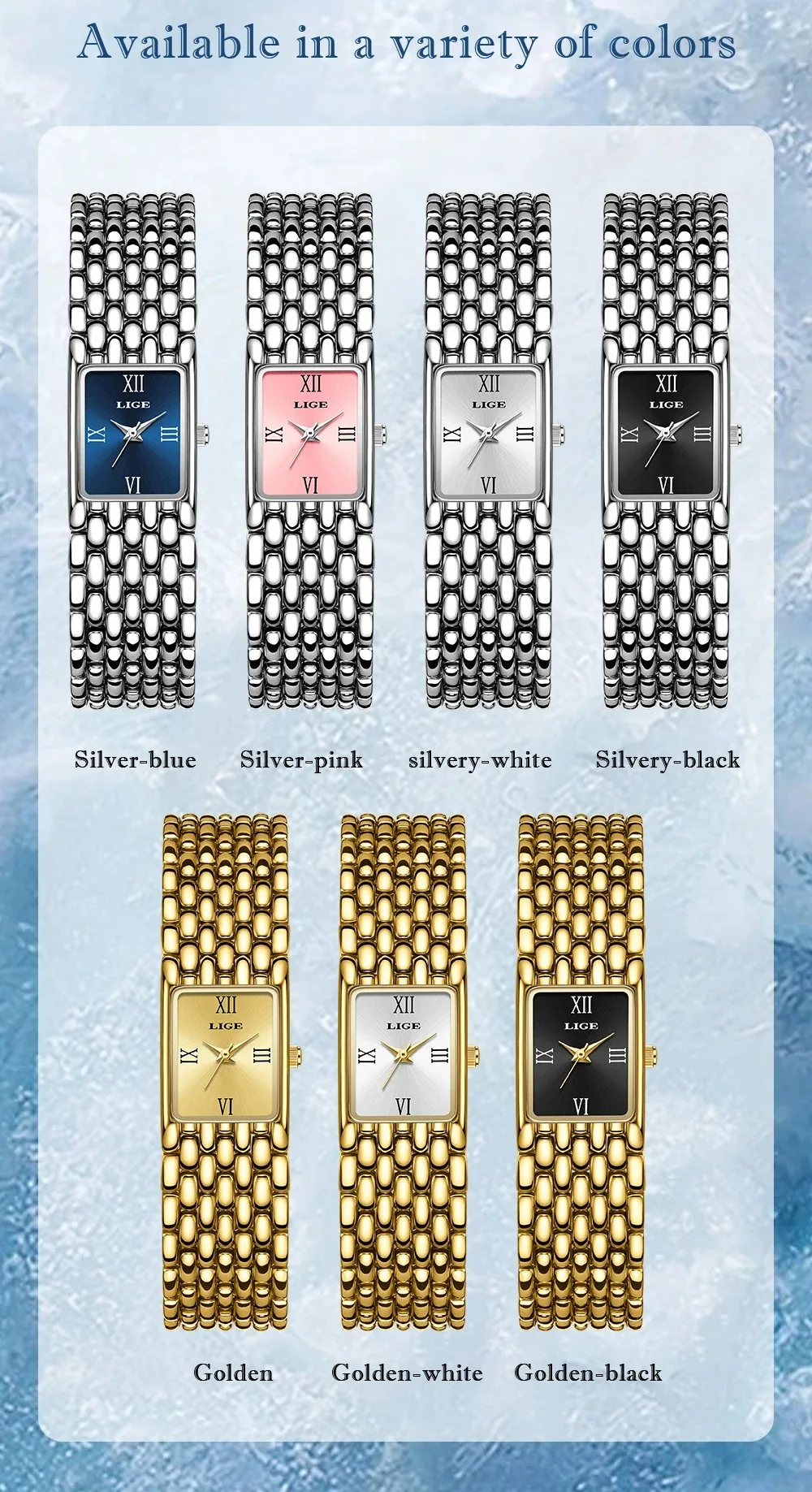 LIGE New Design Ladies Watch Fashion Quartz Wristwatch Silver Simple Square Women Watches Luxury Stainless Steel Folding Clock
