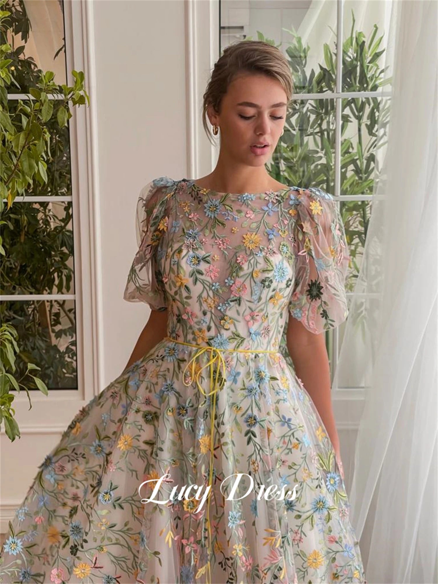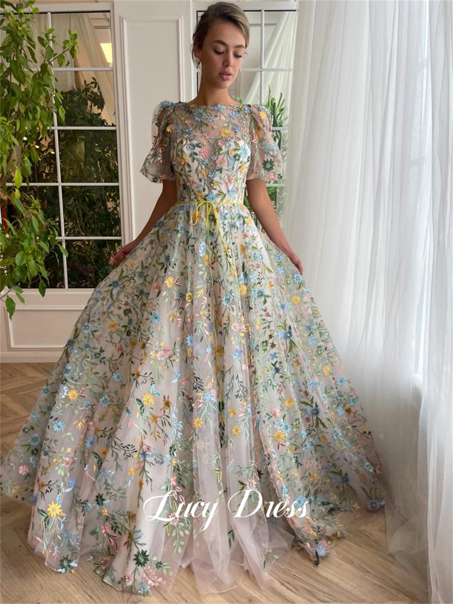 Whether you're drawn to the timeless sophistication of a black evening dress or perhaps considering a vibrant orange prom dress to express your personality, this floral embroidery dress provides a versatile base for exploring different styles. If black evening gowns are your usual choice for formal events, consider this floral dress as a lighter, more whimsical alternative that still exudes elegance. For those who love the playful charm of a hot pink prom dress or the soft pastel hues of a light blue prom dress, this dress offers a beautifully detailed and romantic option that is uniquely captivating.