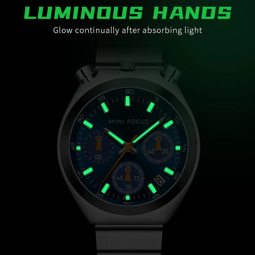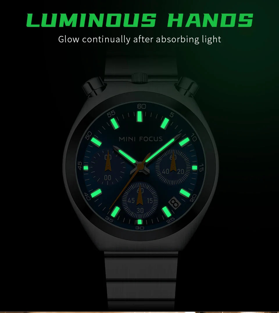 Feature: Shock Resistant,Auto Date,Chronograph,Complete Calendar,Water-Resistance,Luminous Hands