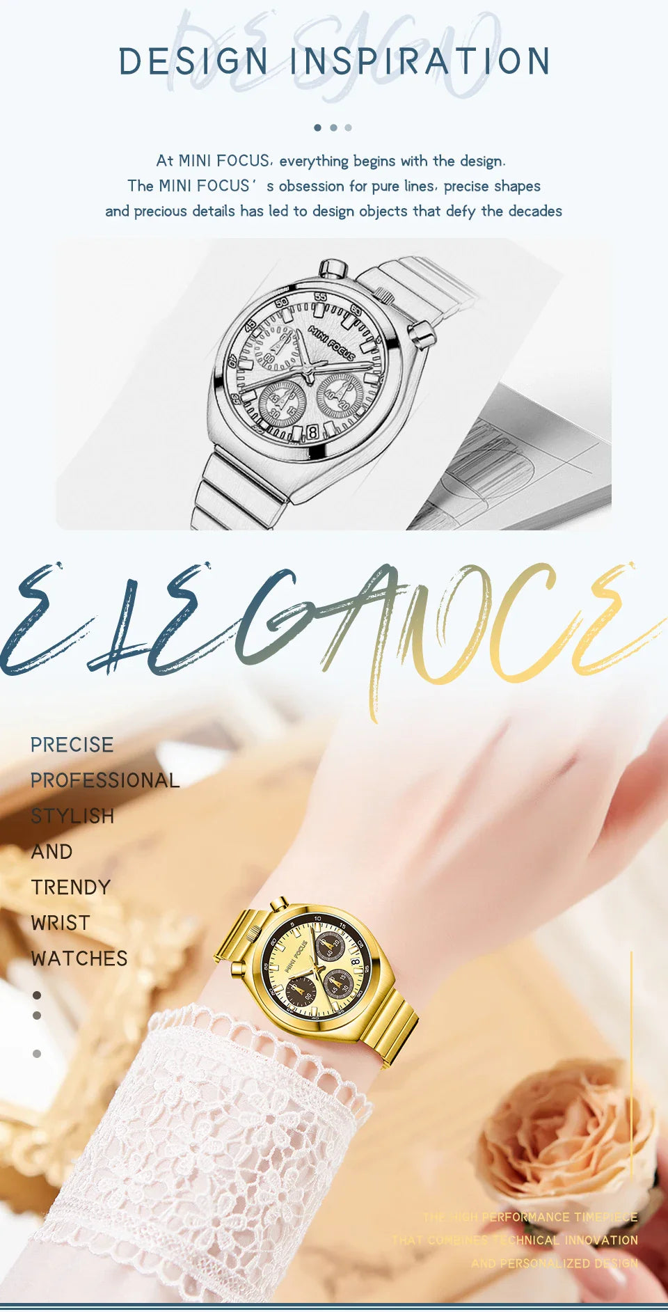 MINI FOCUS Fashion Gold Watch Women Watches Ladies Creative Steel Women's Bracelet Watches Female Waterproof Clock Reloj Mujer