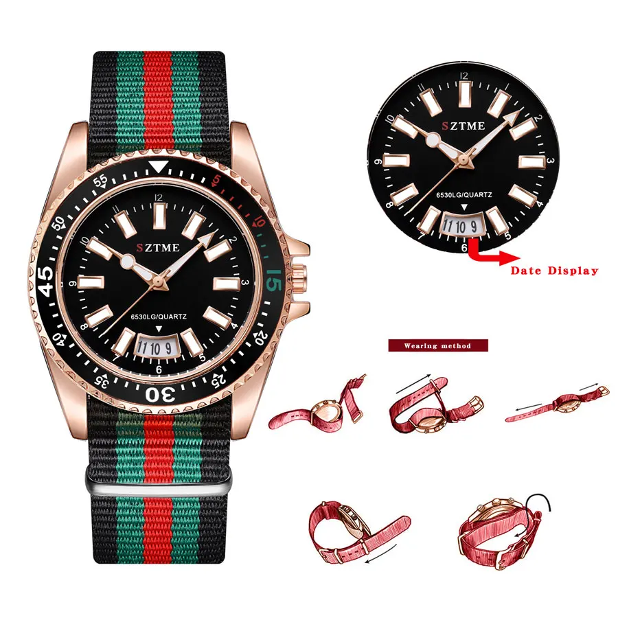 New fashionable women's nylon strap calendar watch, luxurious and simple casual couple luminous quartz watch