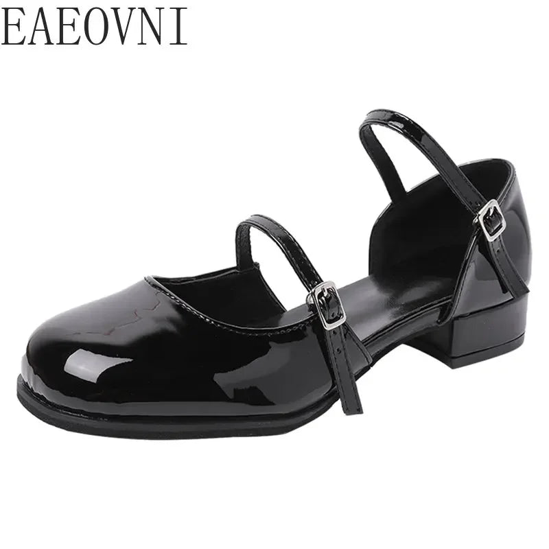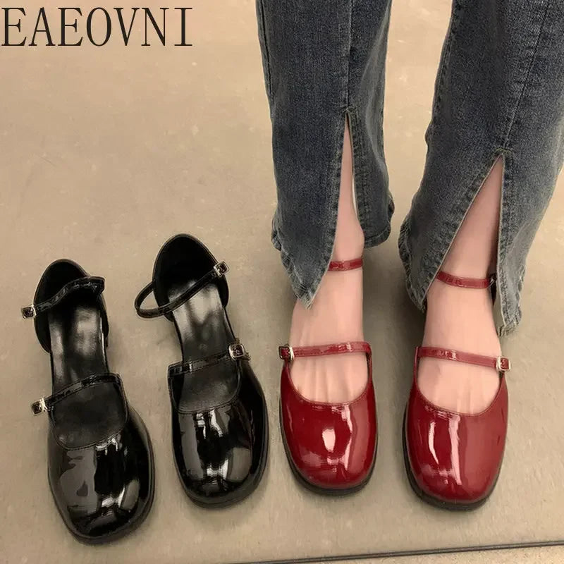 Elegant Buckle Pumps for Women - Thick Heels with Shallow Square Toe for a Perfect Party Look