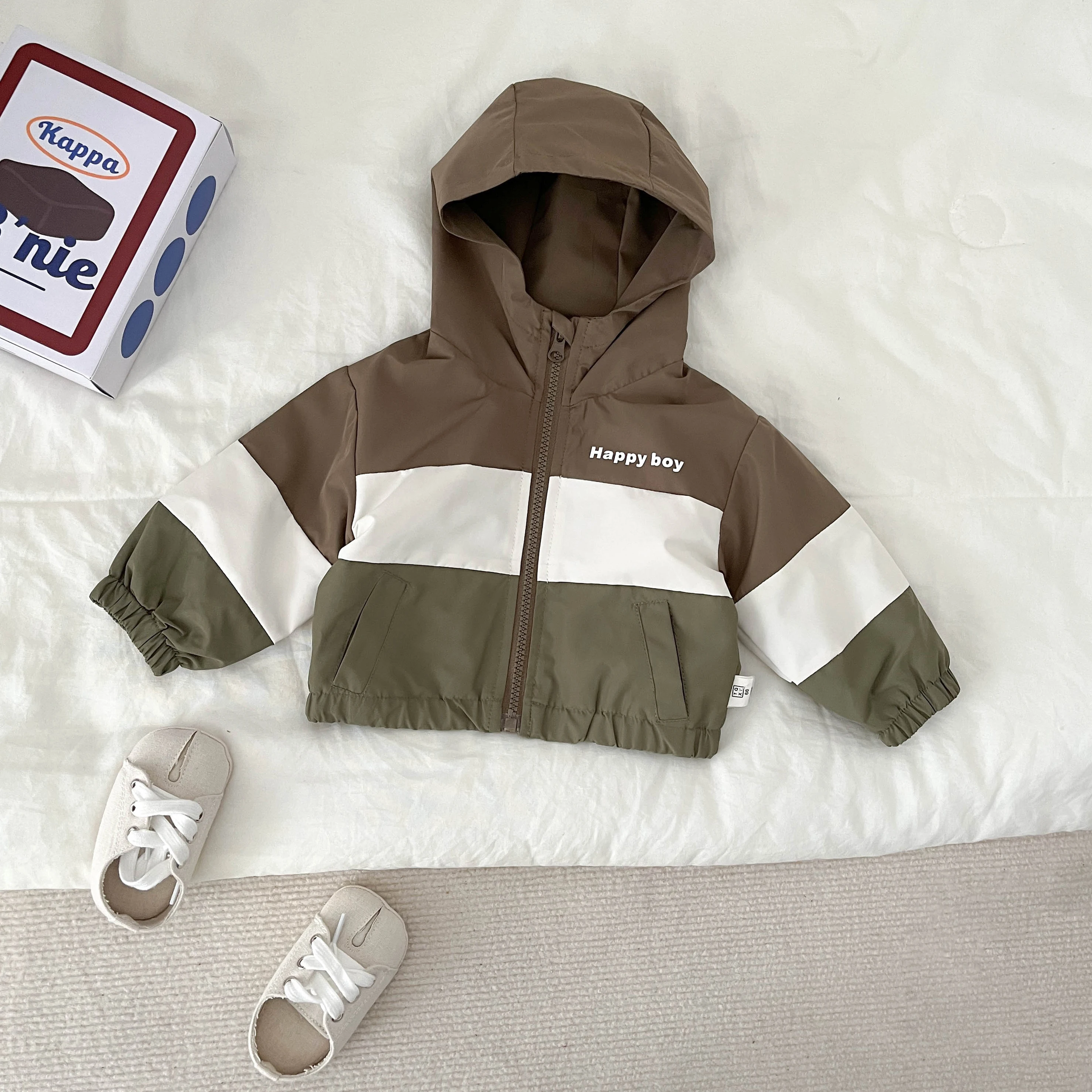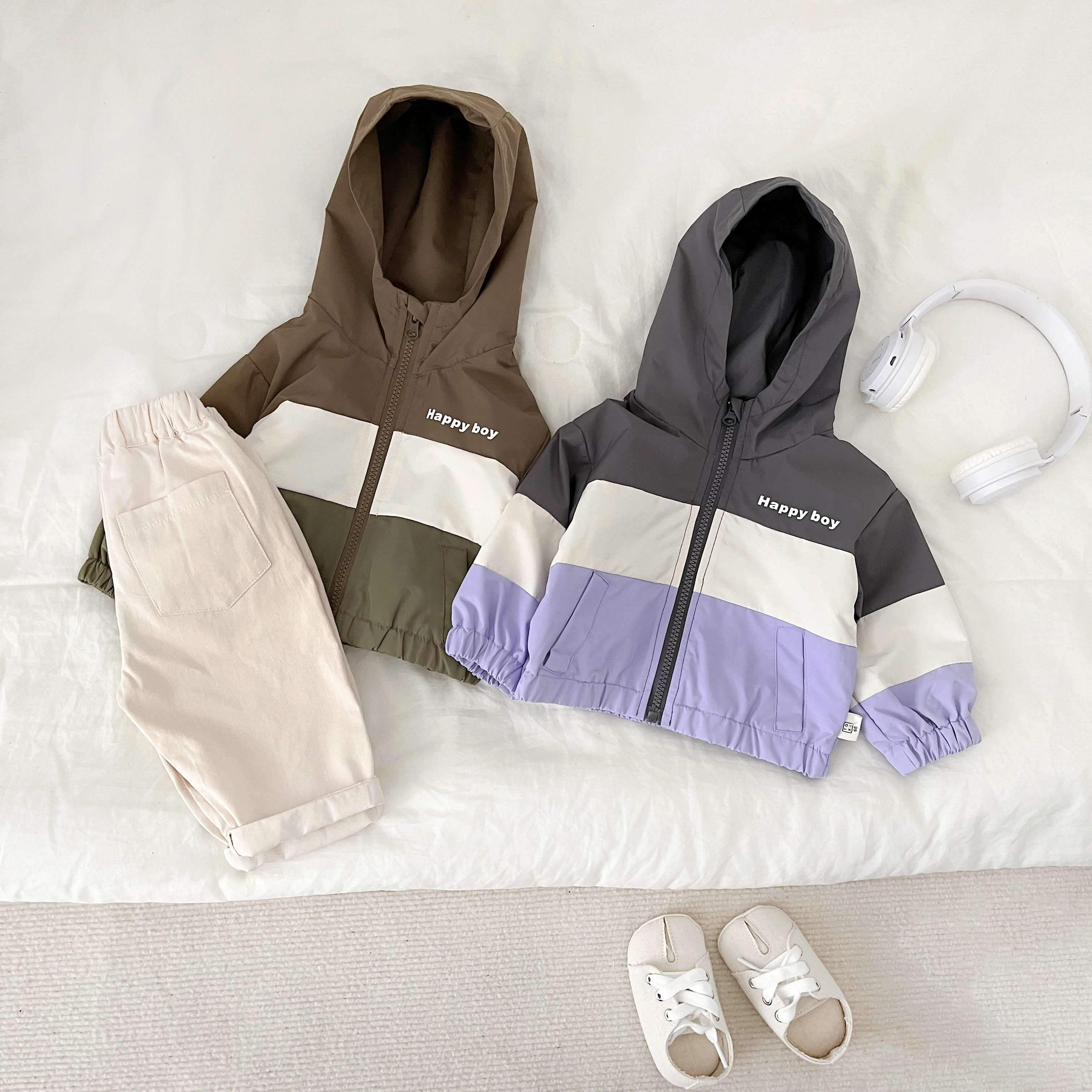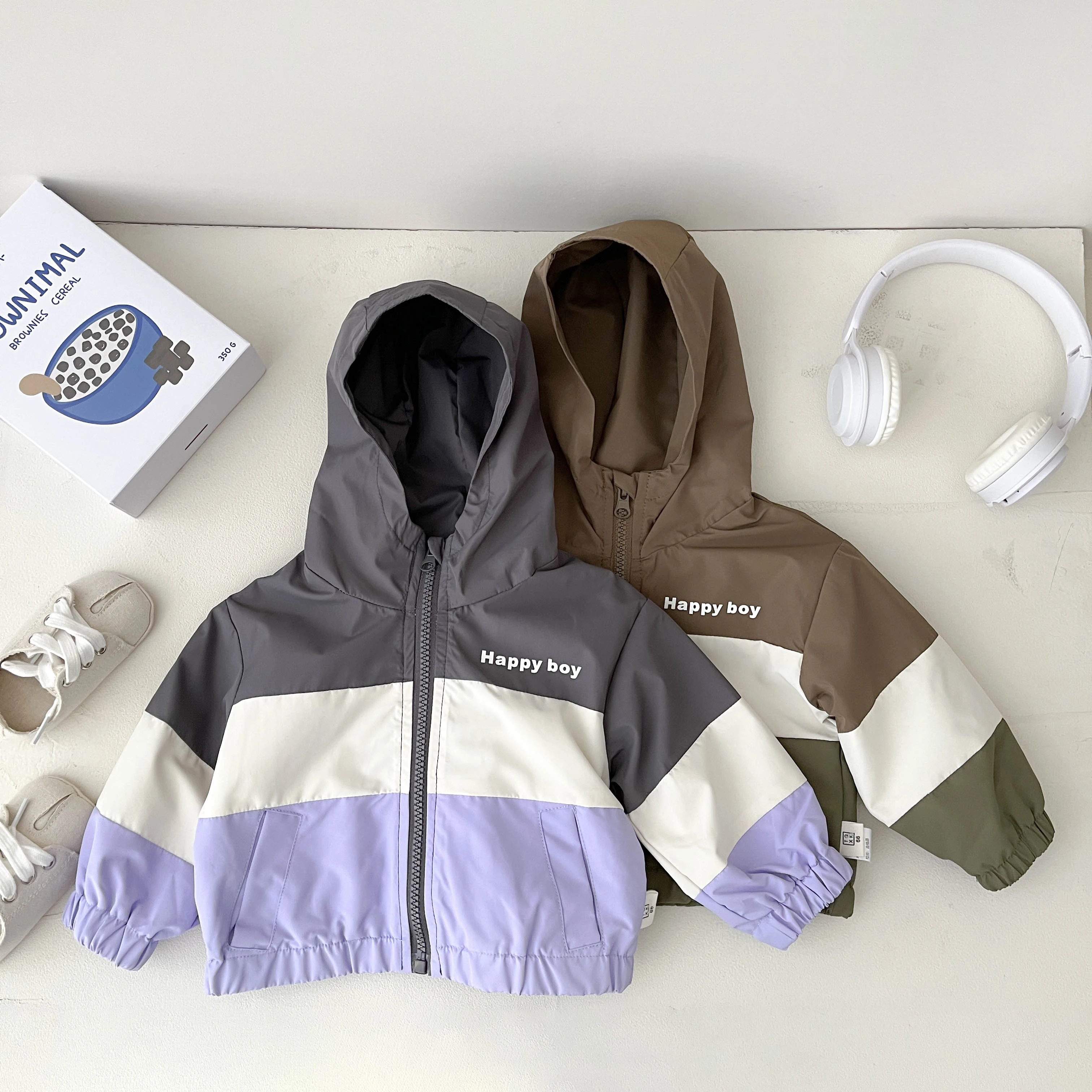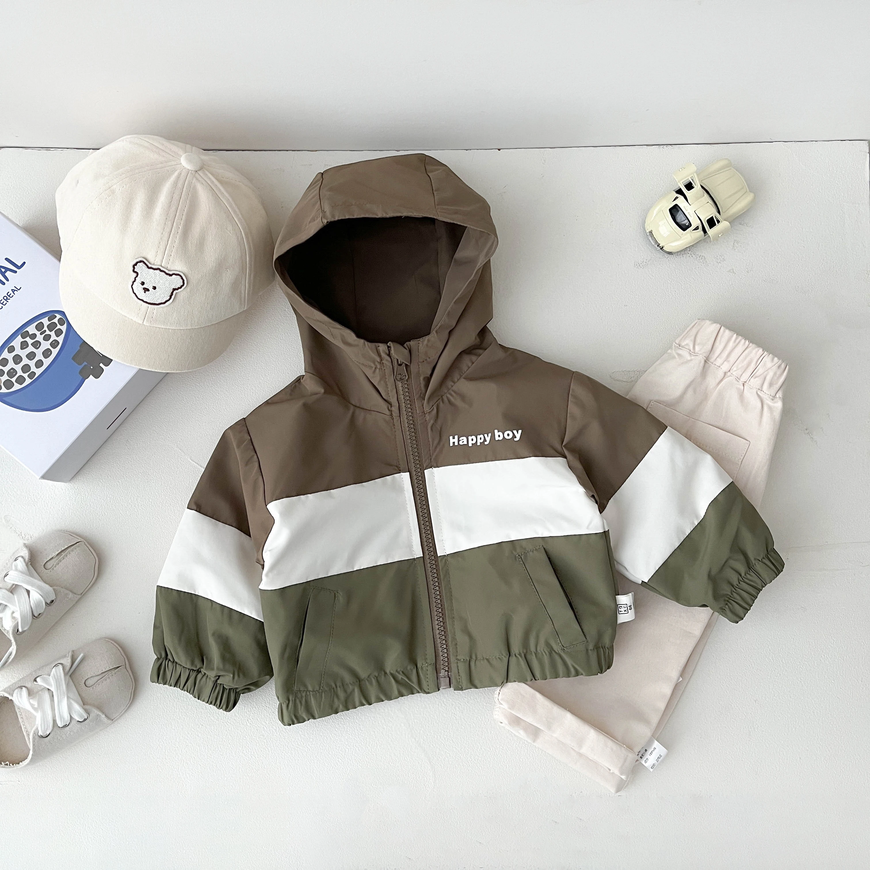 Baby Boys Spring And Autumn Jacket Hooded Letter Zippered Sports Safe Coat Travel Korean Fashion Hip-Hop Soft Casual