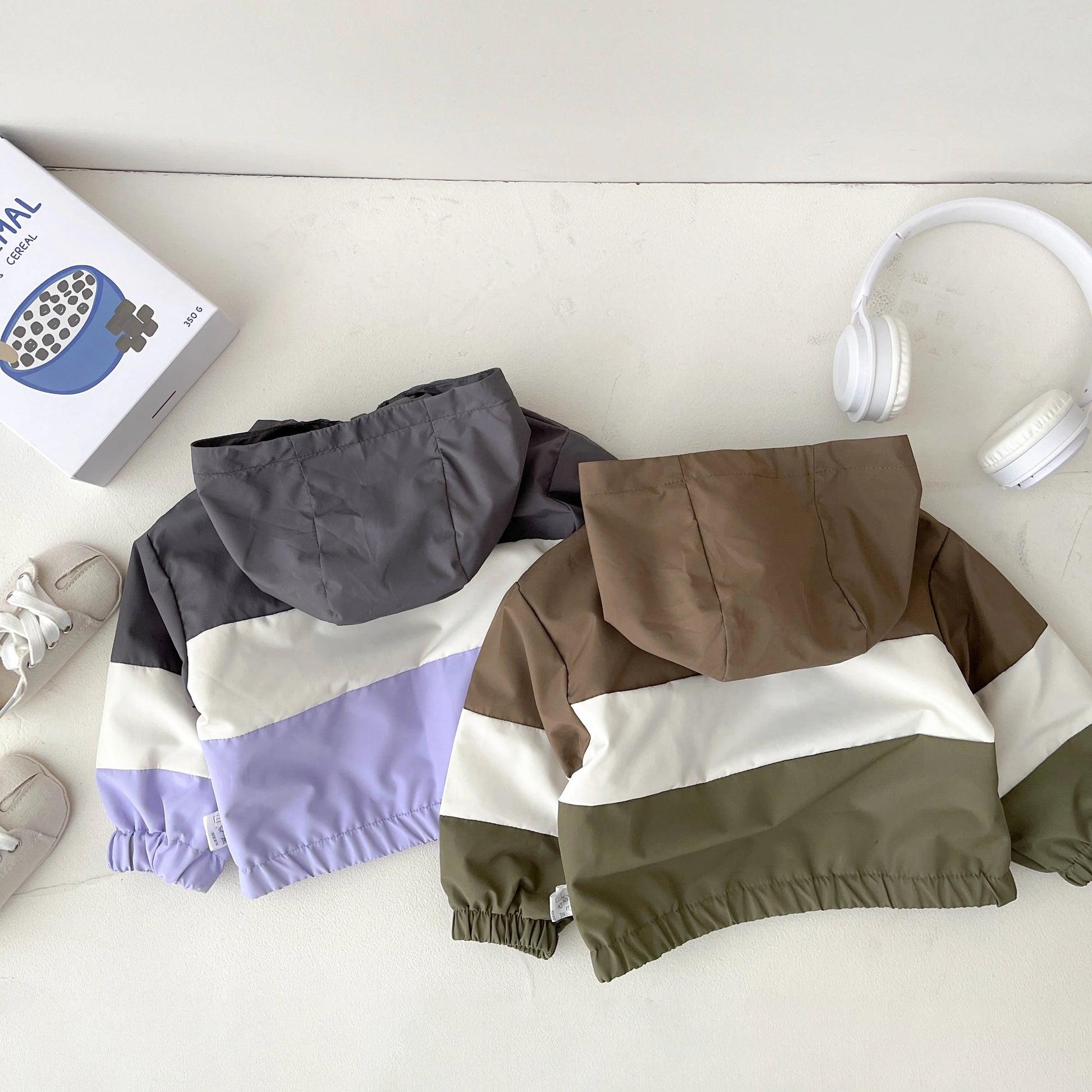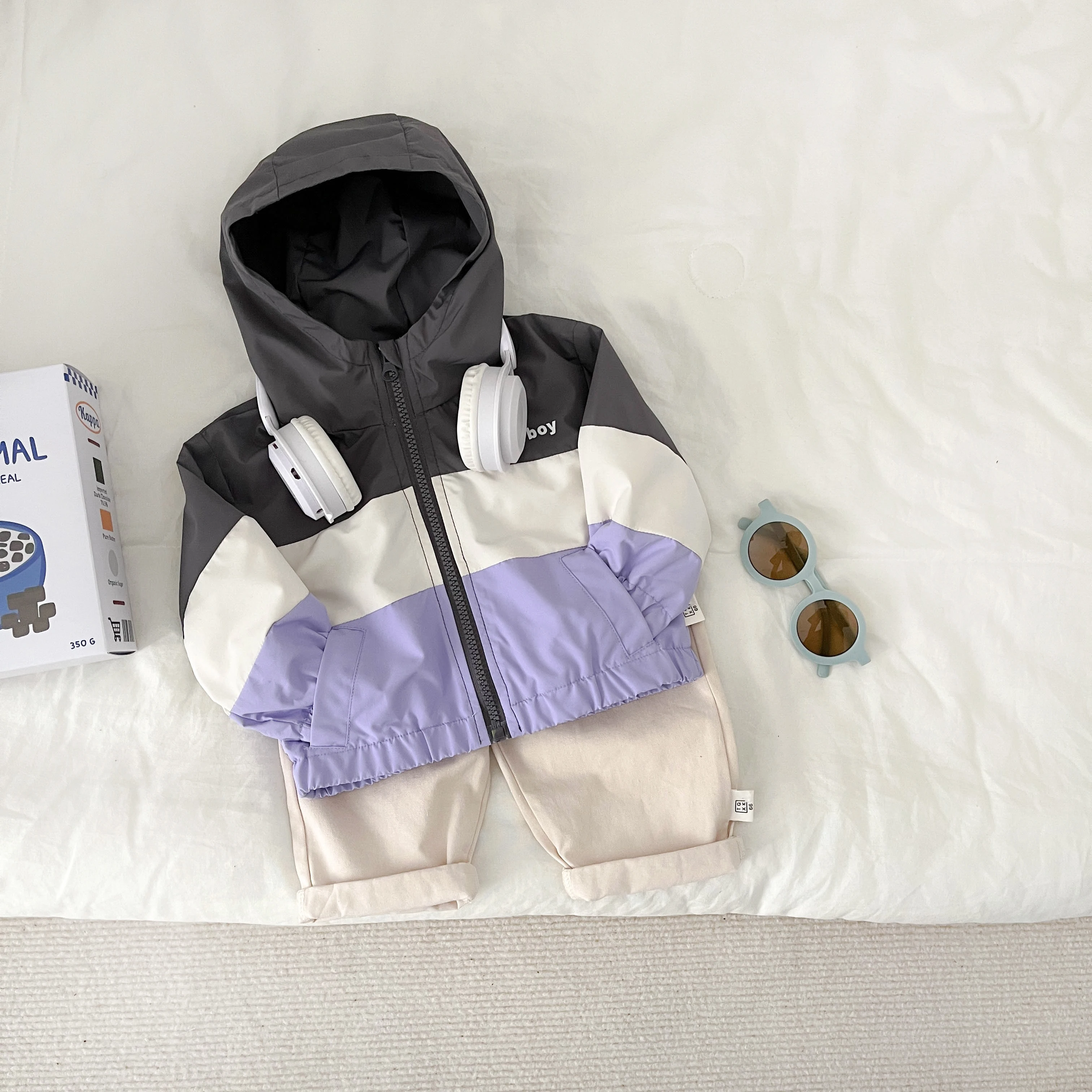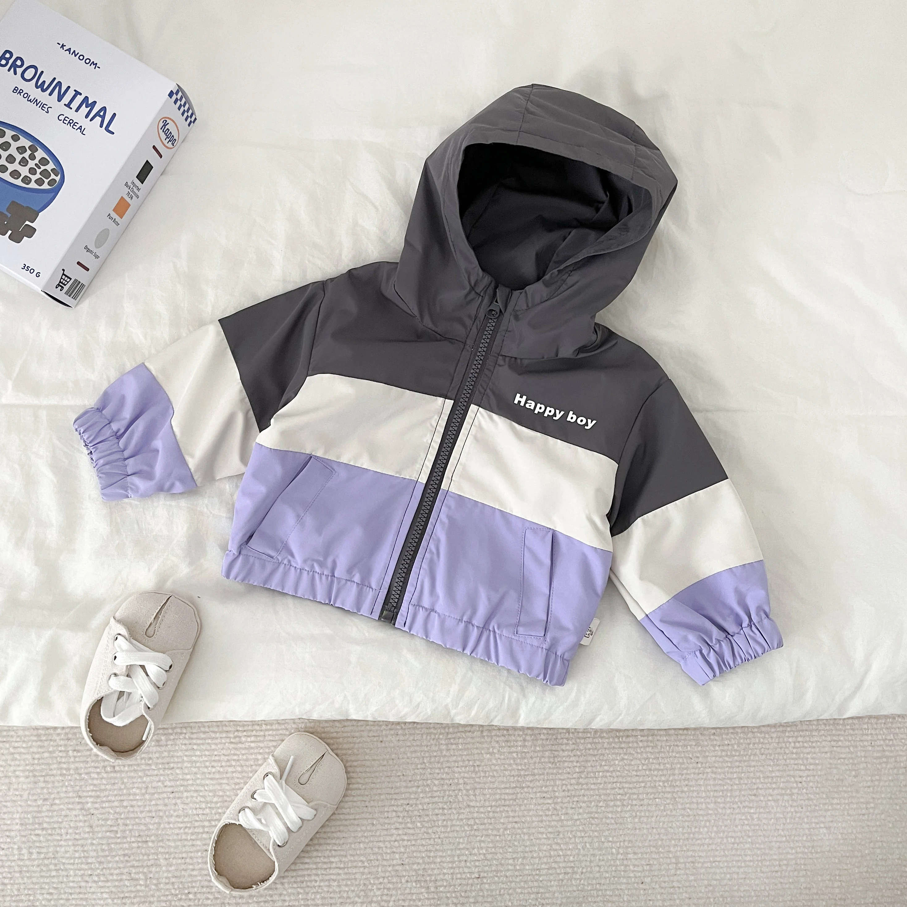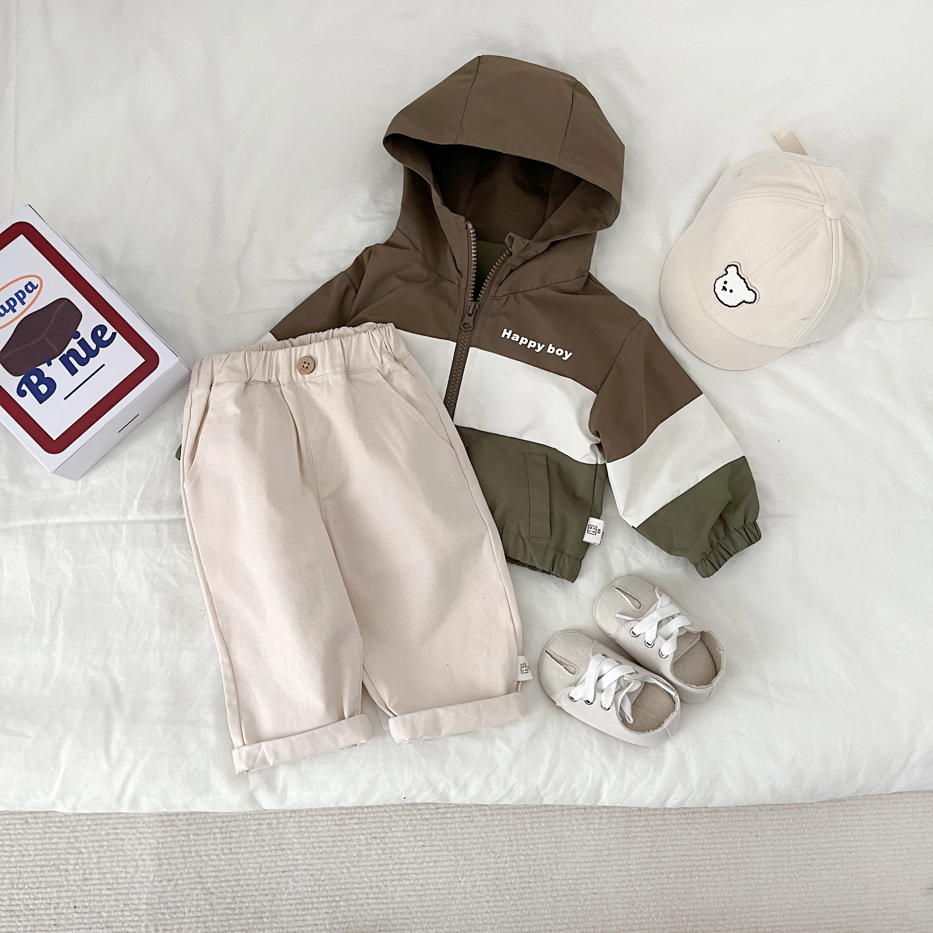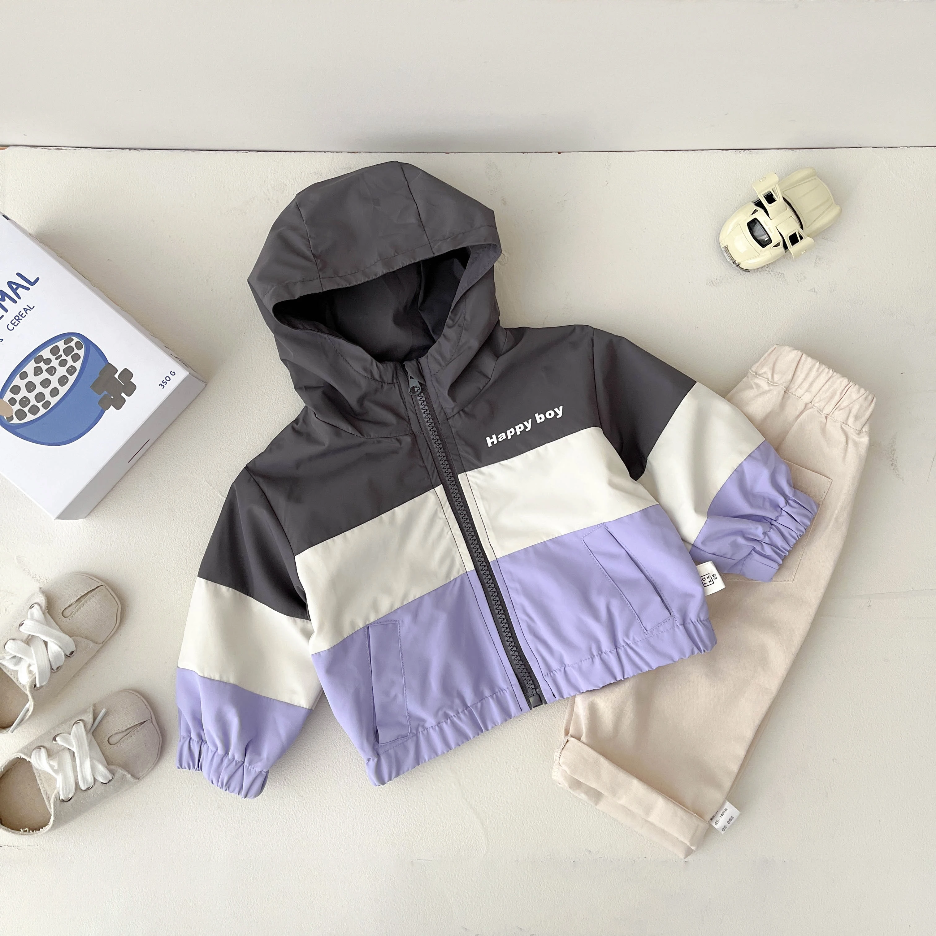 Baby Boys Spring And Autumn Jacket Hooded Letter Zippered Sports Safe Coat Travel Korean Fashion Hip-Hop Soft Casual